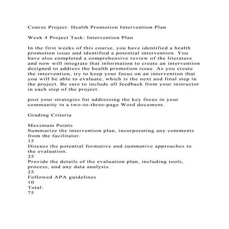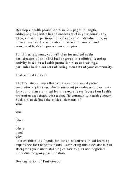Comprehensive Guide to Health Promotion Project - Part 1 | Course Hero