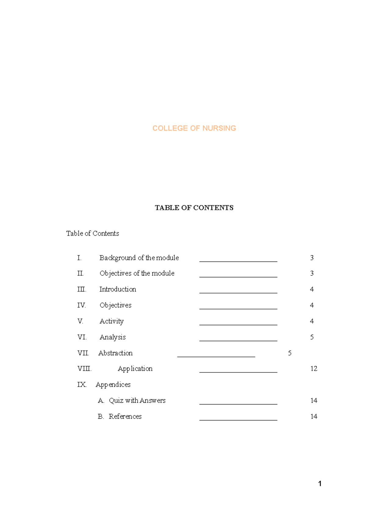 Content - Nursing - Table of Content Appendix Acronyms/ Abbreviations 1 ...