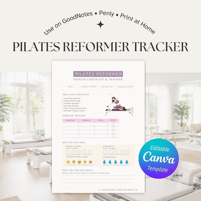 Pilates Reformer Workout Tracker Editable Canva Template | Pilates ...