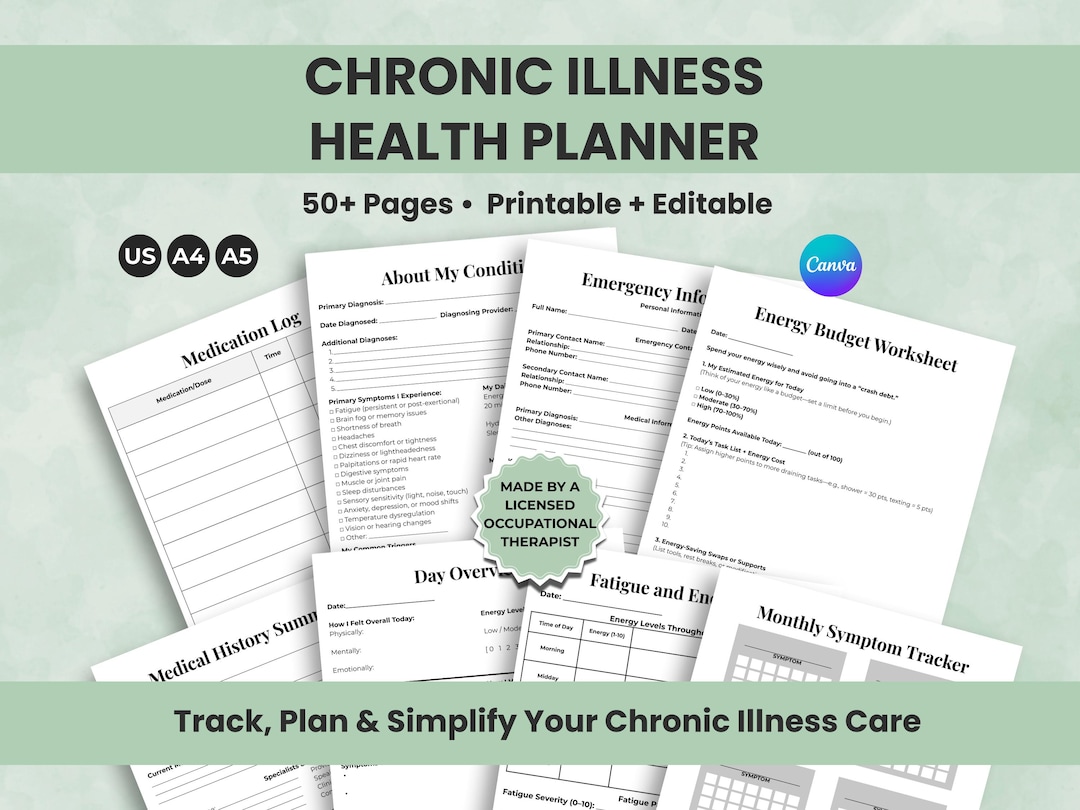 Chronic Illness Planner, Health Tracker, Editable Template (digital ...