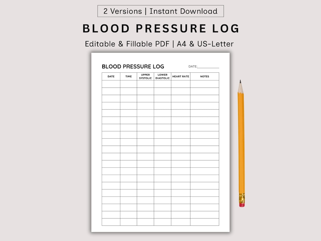 Blood Pressure Log Printable Template, Daily BP Tracking, Medical ...