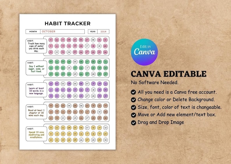 EDITABLE Daily Habit Tracker Template Graphic | Fitness & Health Habit ...