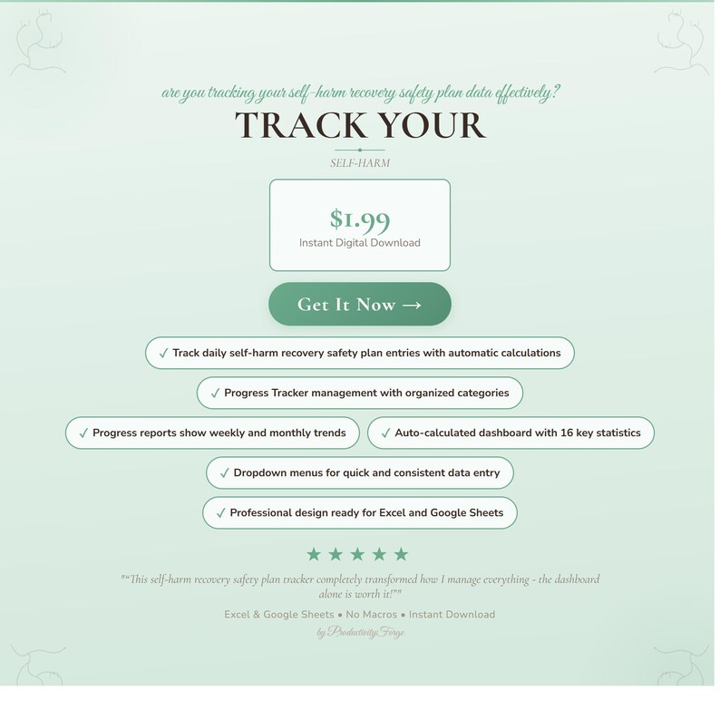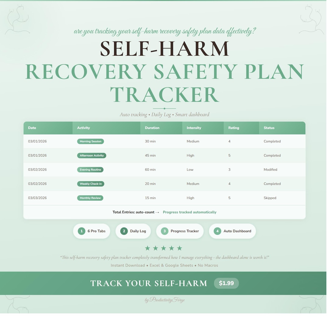 Self-harm Recovery Safety Plan Tracker Spreadsheet Google Sheets Excel ...