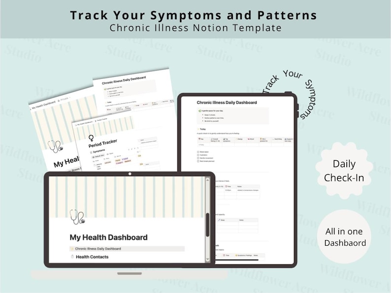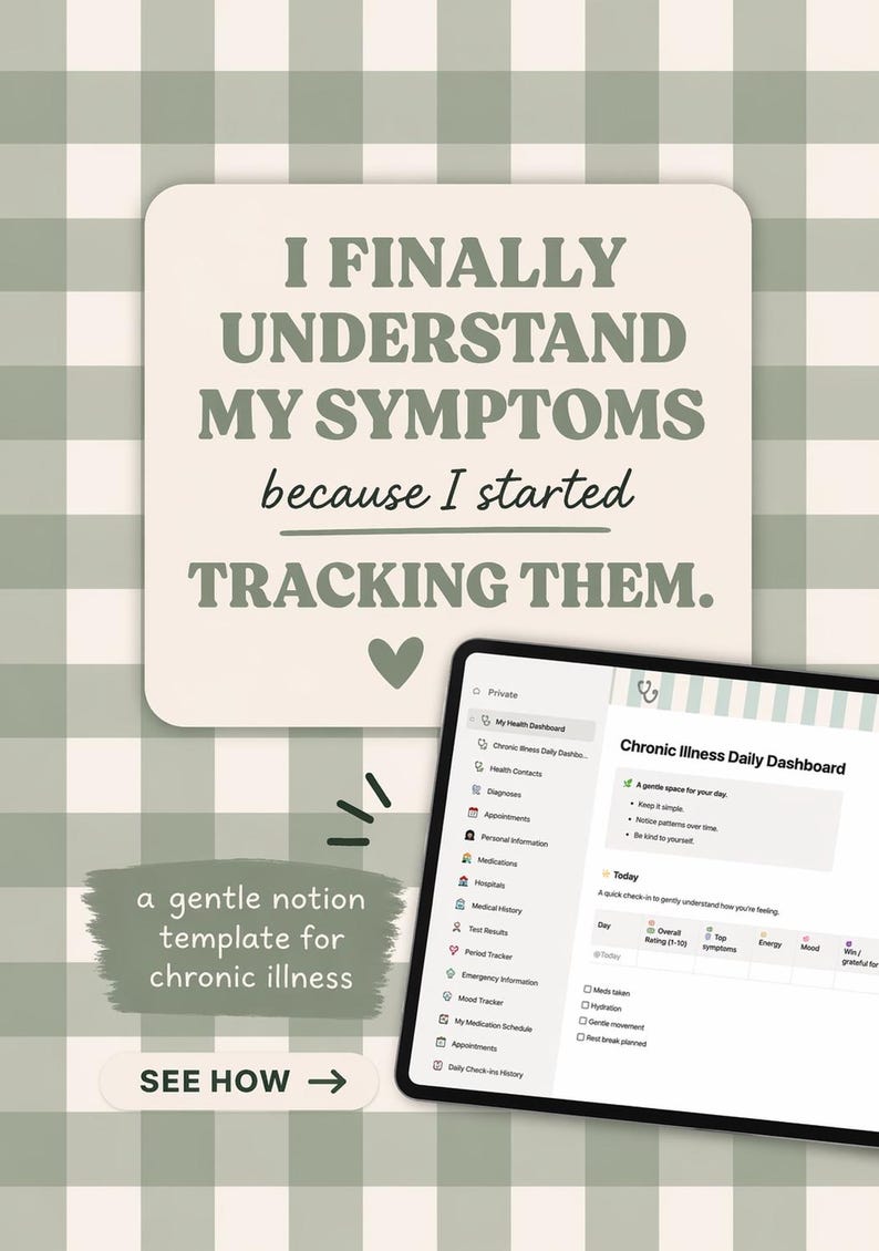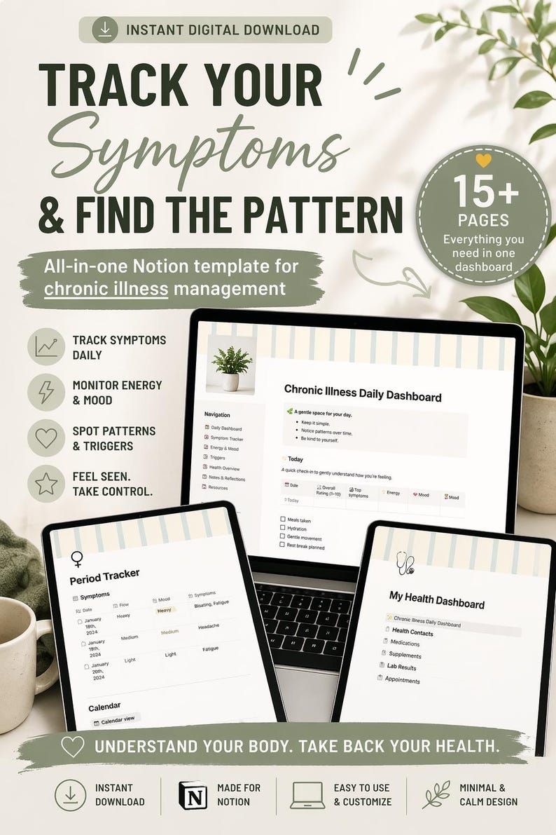 Hashimotos & Chronic Illness Notion Template | Symptom Tracker Mood ...