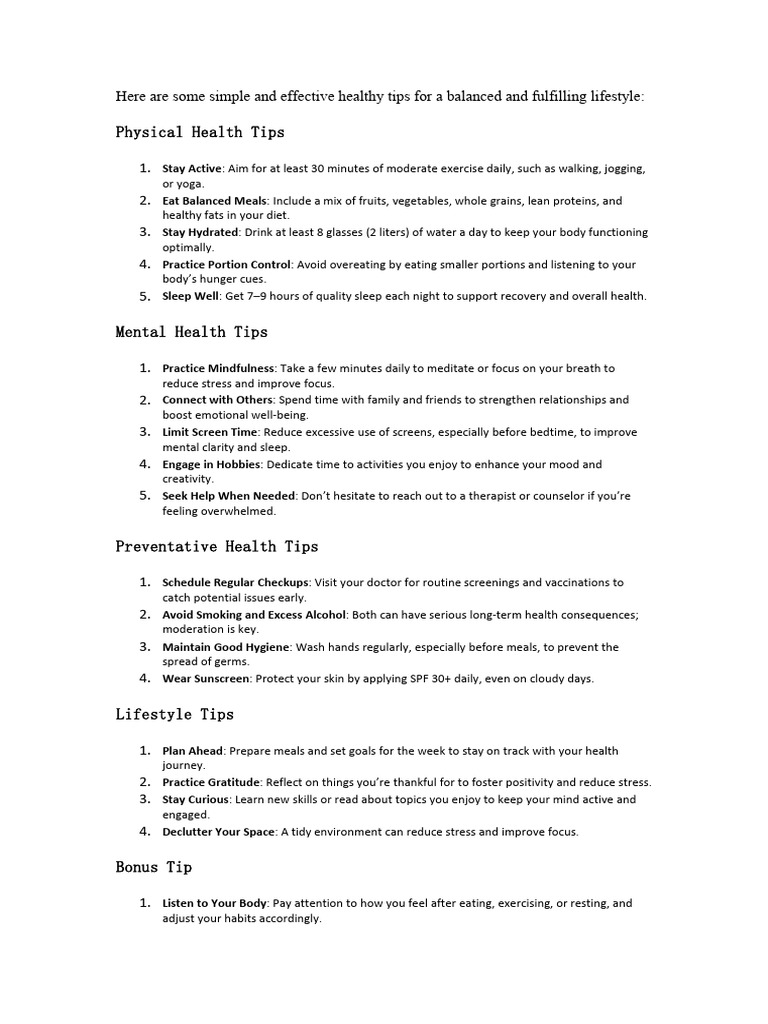 Here Are Some Simple and Effective Healthy Tips Fo | PDF