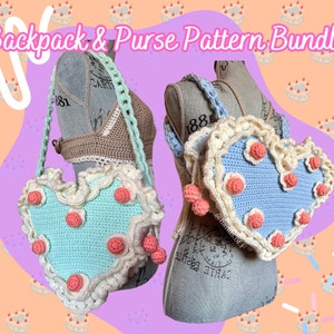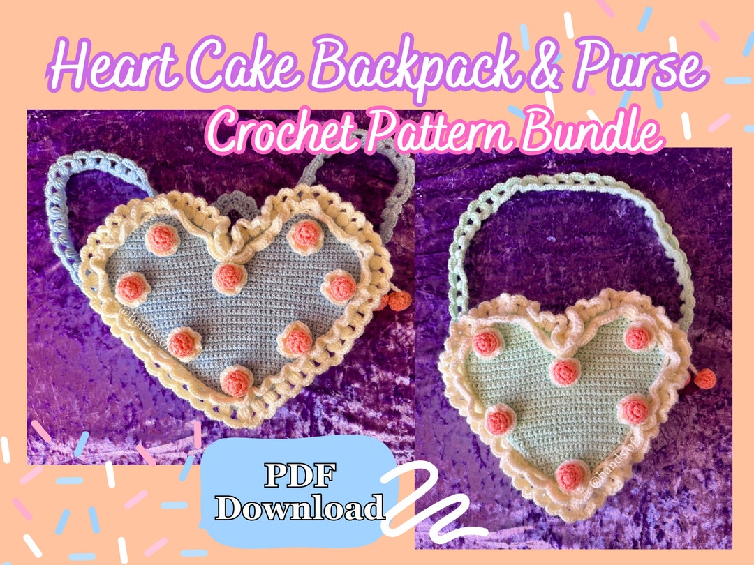 Heart Cake Purse and Backpack Crochet Pattern Bundle, Heart Cake Purse ...