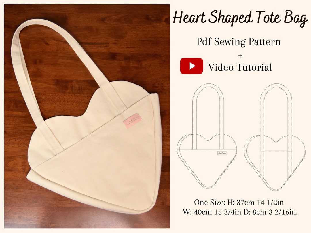 Heart Shaped Tote Bag Pattern Sewing PDF Printable Instant - Etsy Hong Kong