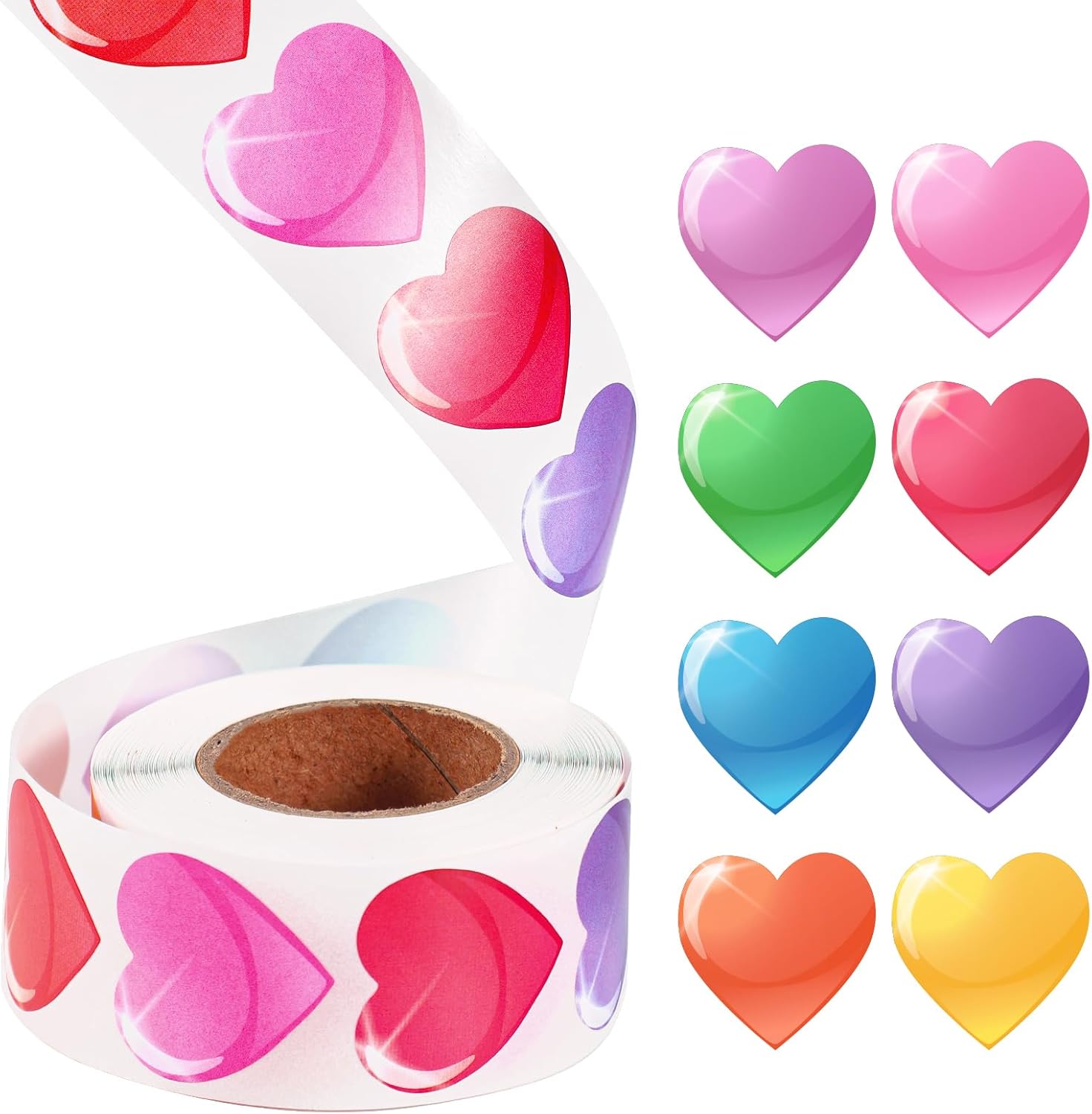 Amazon.com : Colorful Heart Stickers Roll 1.5 Inch Valentine's Day Love ...