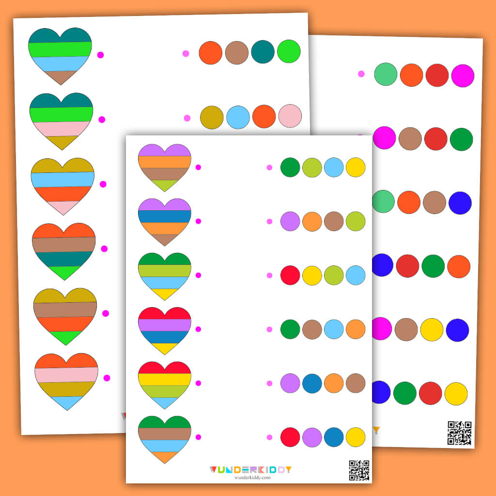 Printable Heart Color Matching Game for Early Learning | Kindergarten ...