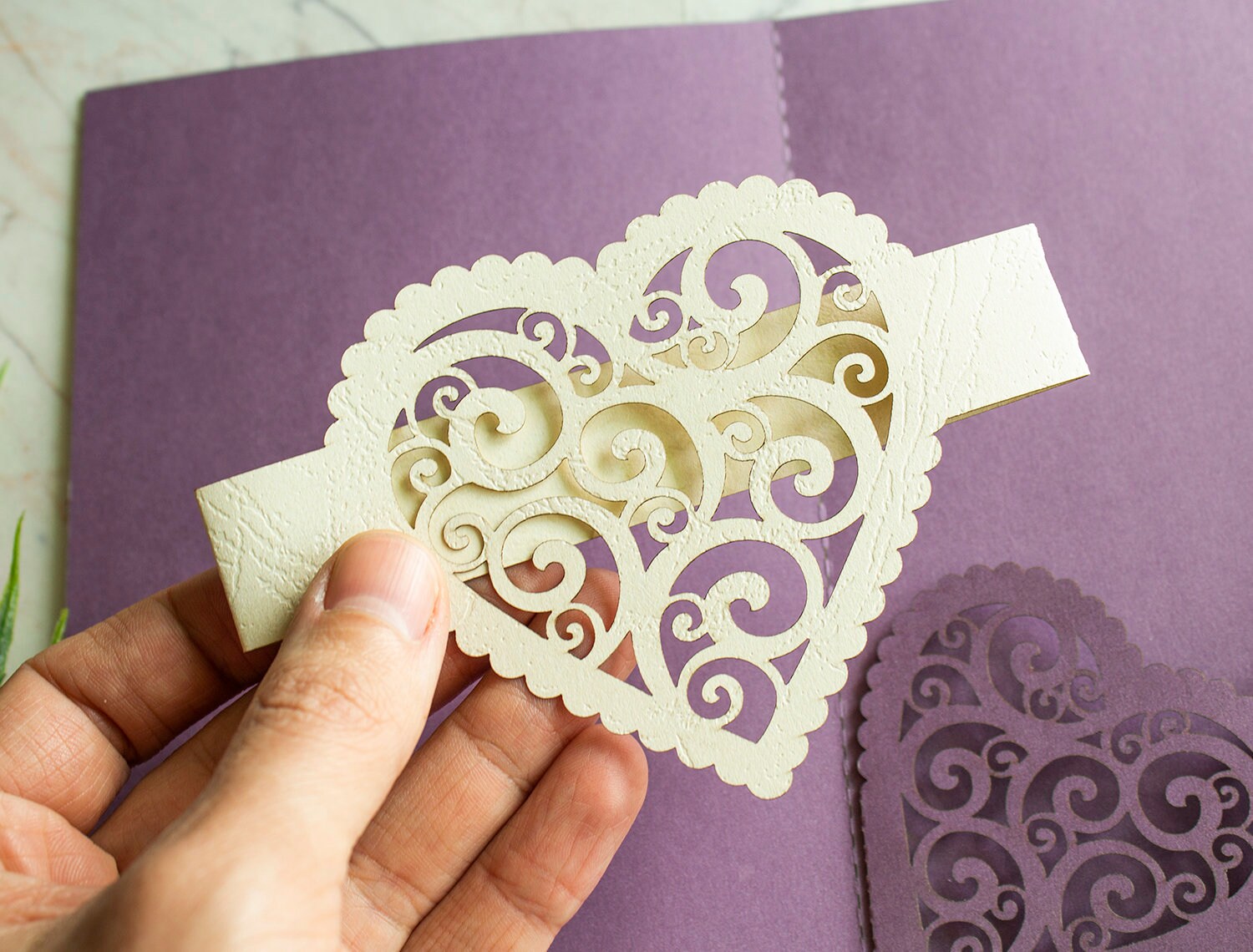 Wedding heart invitation SVG template, heart lace 5x7 pocket | Inspire ...