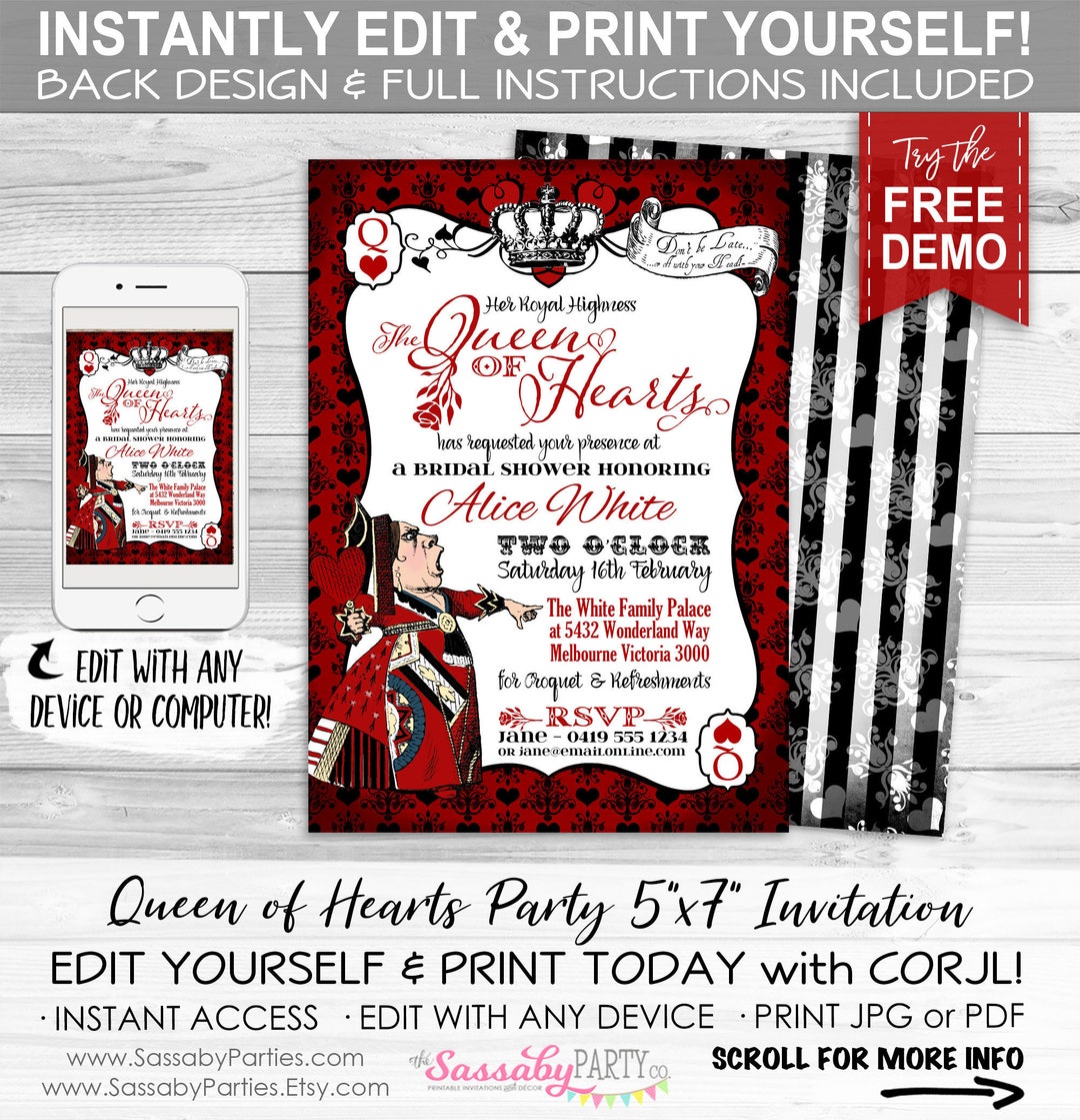 Queen of Hearts Invitation INSTANT DOWNLOAD Partially Editable ...