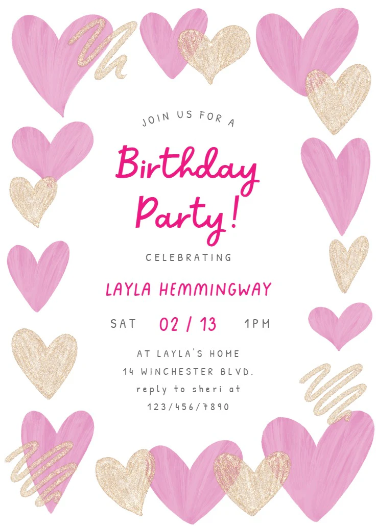 Birthday Hearts - Birthday Invitation Template | Greetings Island
