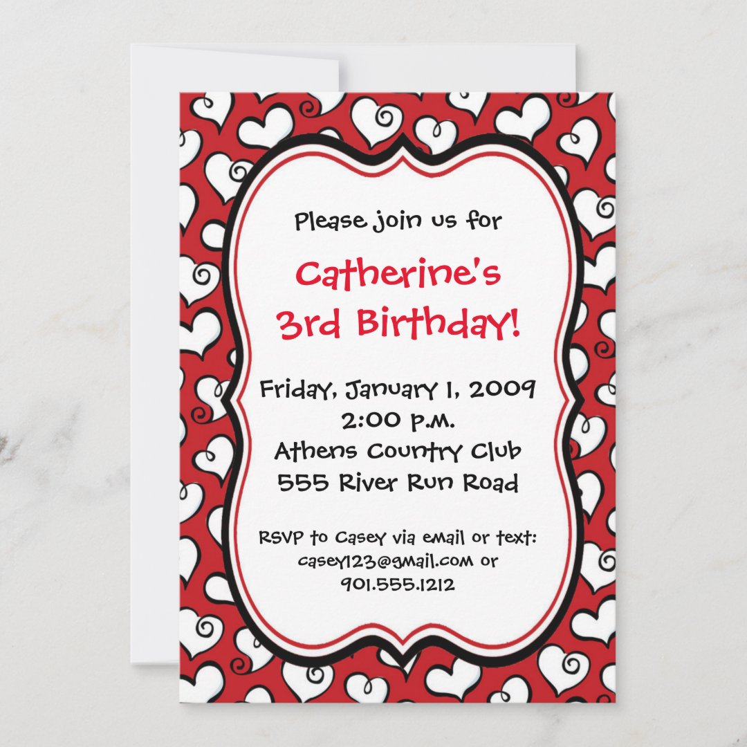 Editable Heart Themed Birthday Party Invitation Template Pink and Red ...