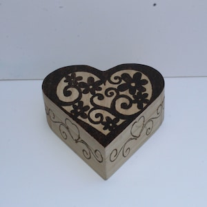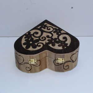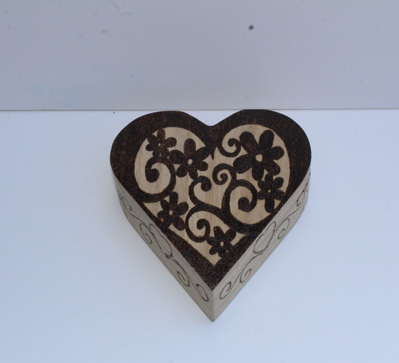 Heart Shaped Trinket Box With a Pyrography Flower Pattern. - Etsy UK