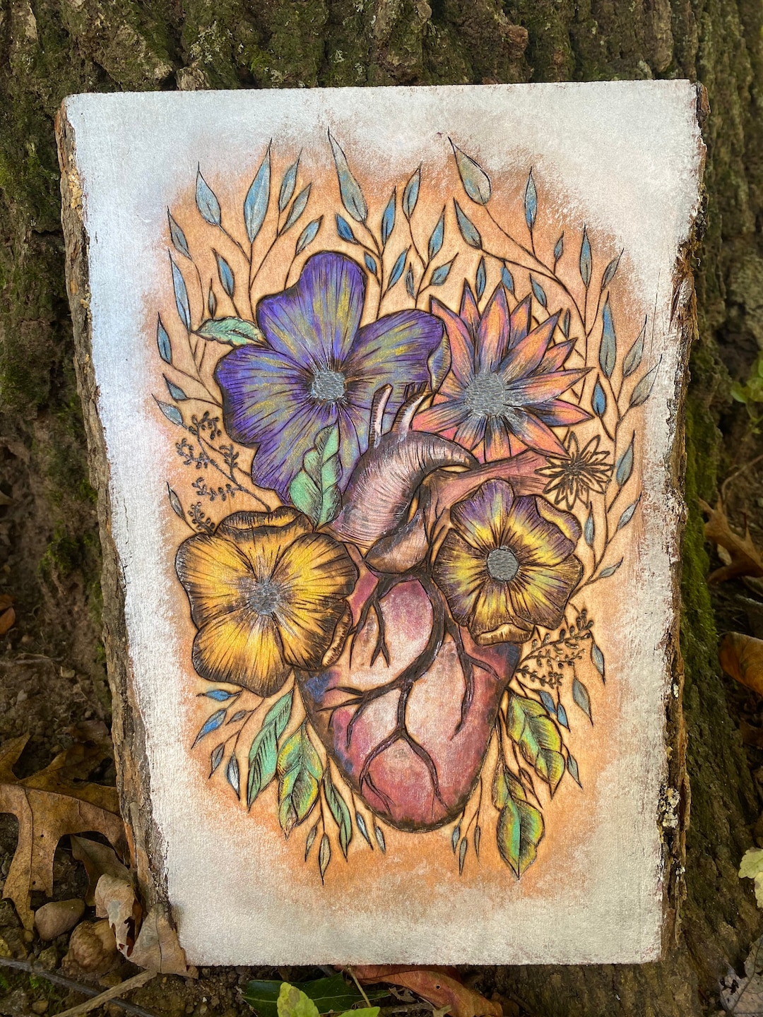 Anatomical Heart Pyrography Morbid Art Blooming Heart Wood | Etsy