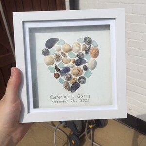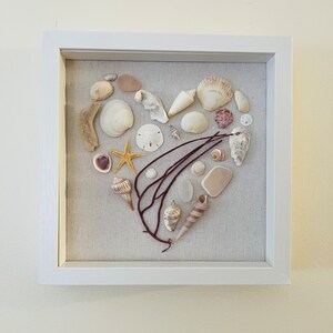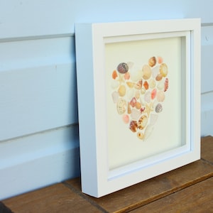 Sea glass heart shells pebbles seashell art frame shadow etsy – Artofit