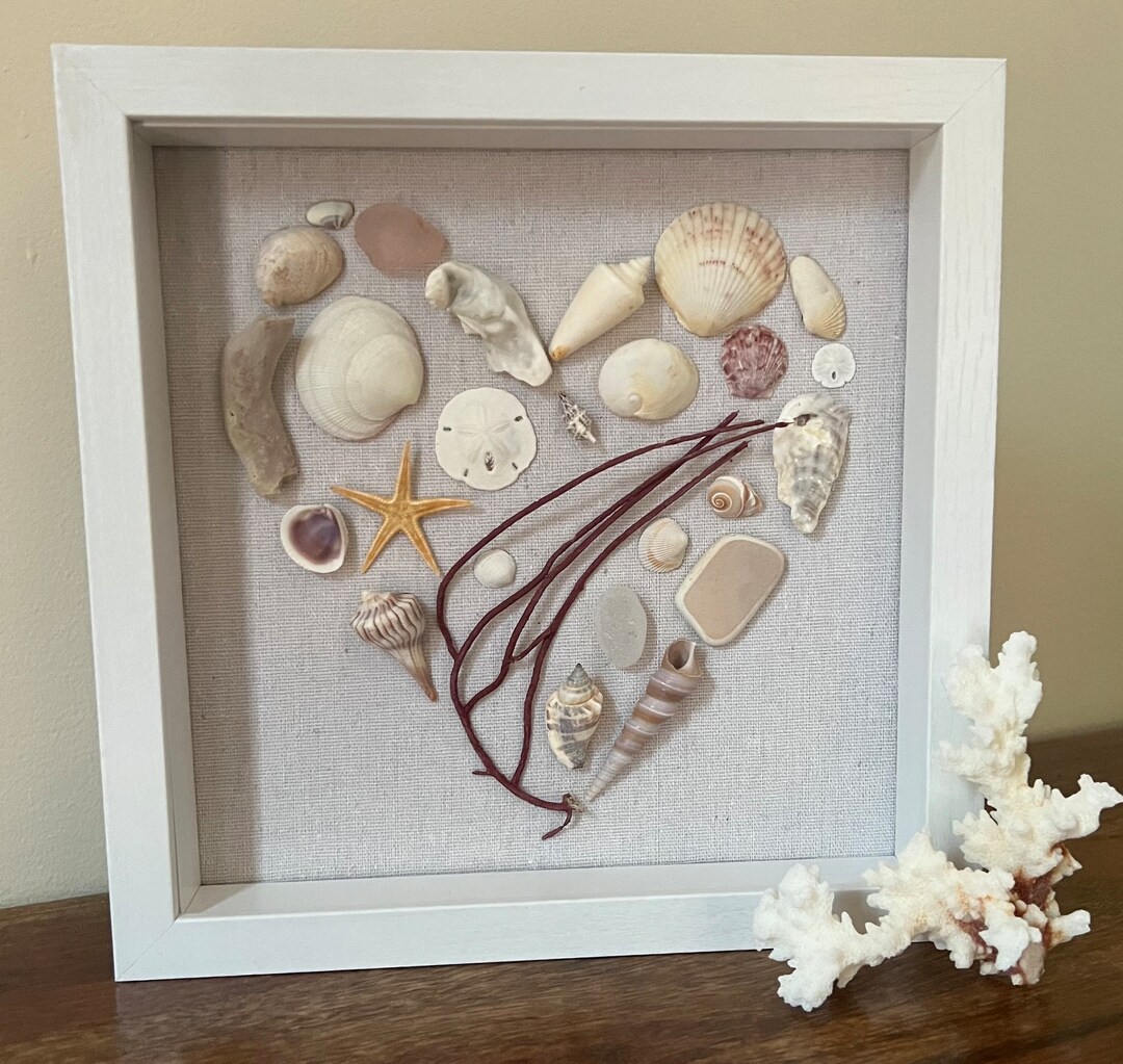 Framed Sea Shell Heart | Beach Themed Home Decor