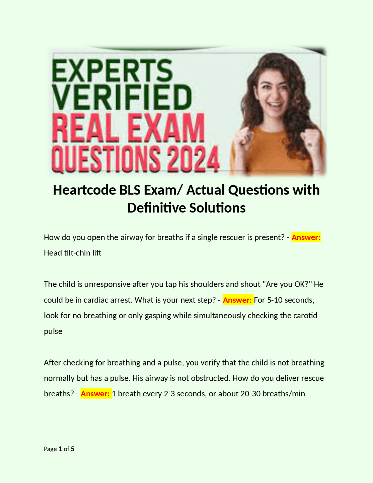Heartcode BLS Exam: Actual Questions and Answers | Exams Nursing | Docsity