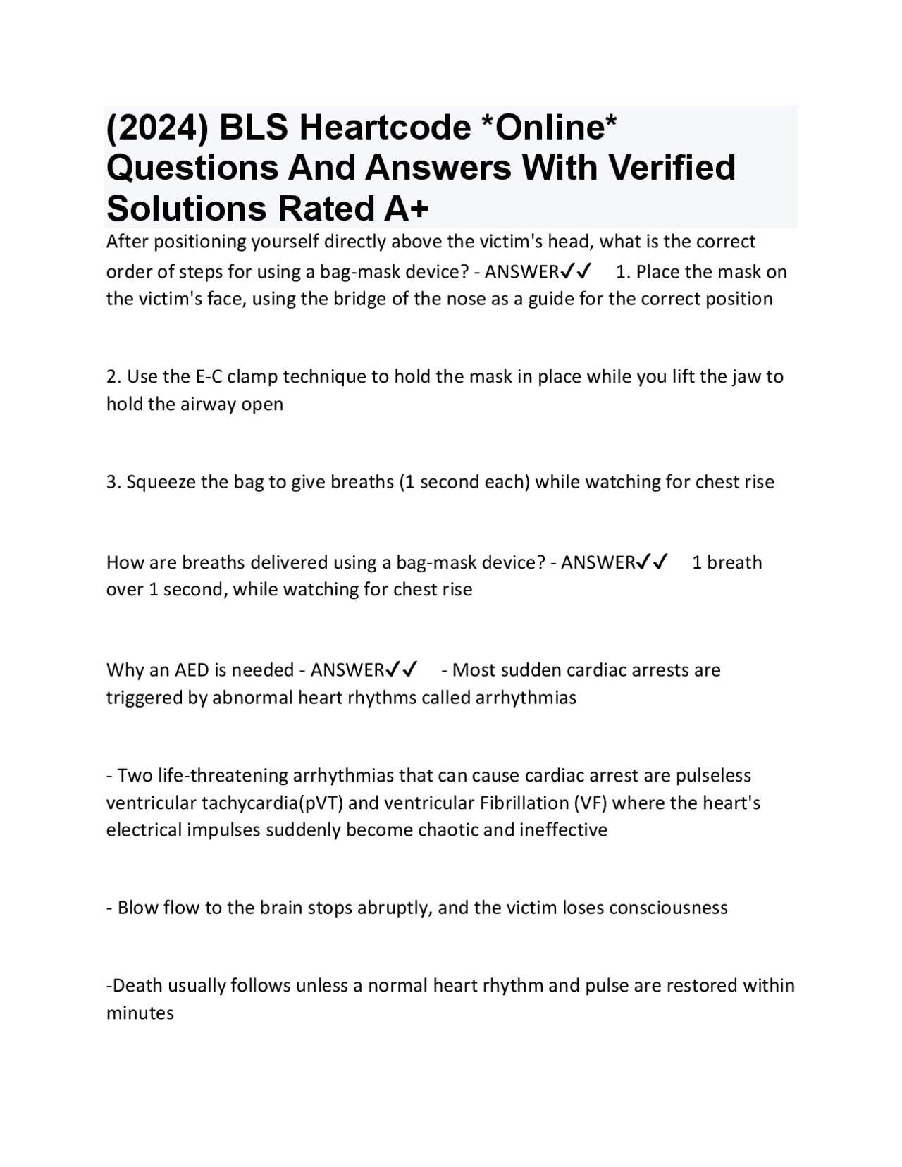 HEARTCODE BLS Exams Questions with 100% Correct Answers | Latest ...