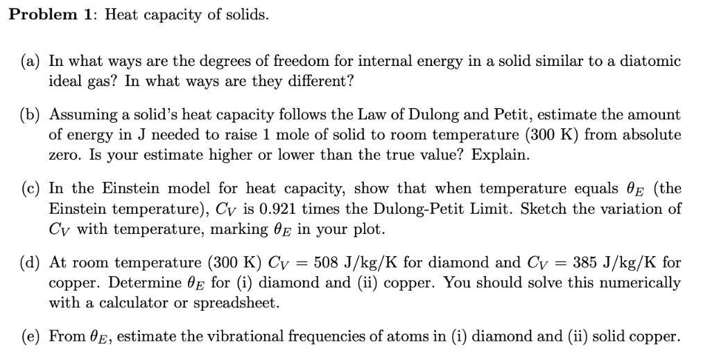 Solved Problem 1: Heat capacity of solids. (a) In what ways | Chegg.com