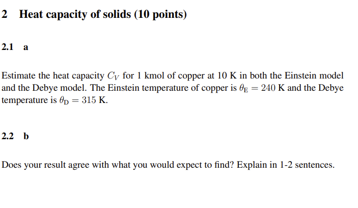 Solved 2 Heat capacity of solids (10 points) 2.1 a Estimate | Chegg.com