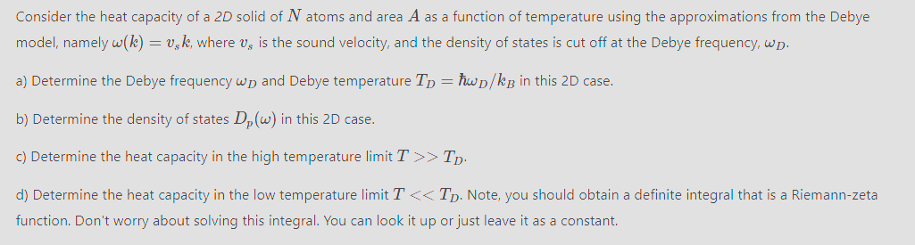Solved Heat capacity of a solid: Debye’s theory of solids | Chegg.com