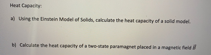 Solved Heat Capacity: a) Using the Einstein Model of Solids, | Chegg.com