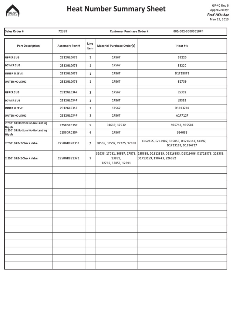 Heat Number Summary for Sales Order 72328 with Multiple Part Numbers ...