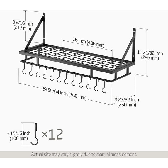 30-Inch Wall Mounted Kitchen Pot Rack with Hooks - Matte Black Heavy ...