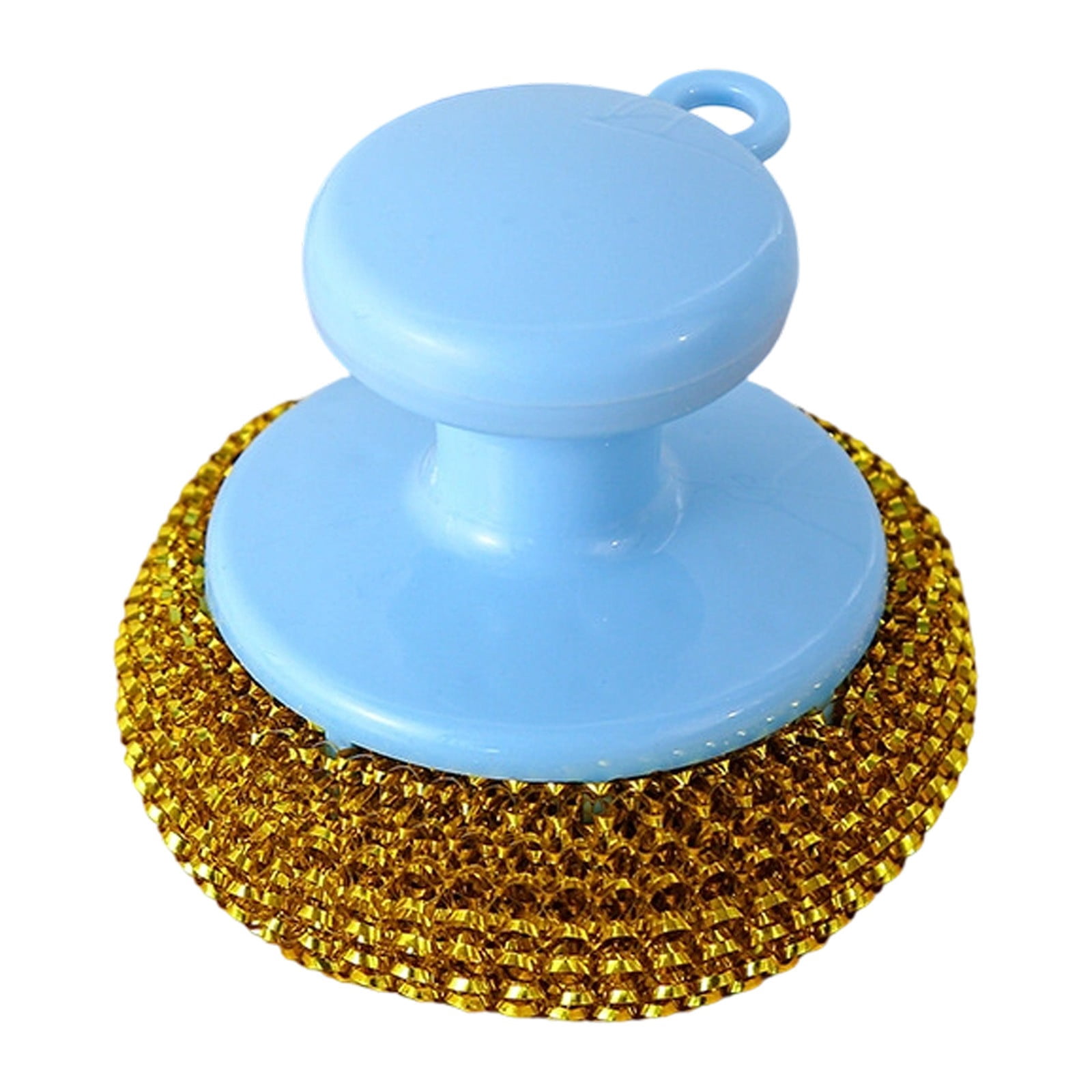 Blue Stainless Steel Wool Scrubber with Handle Heavy Duty Dual-Sided ...