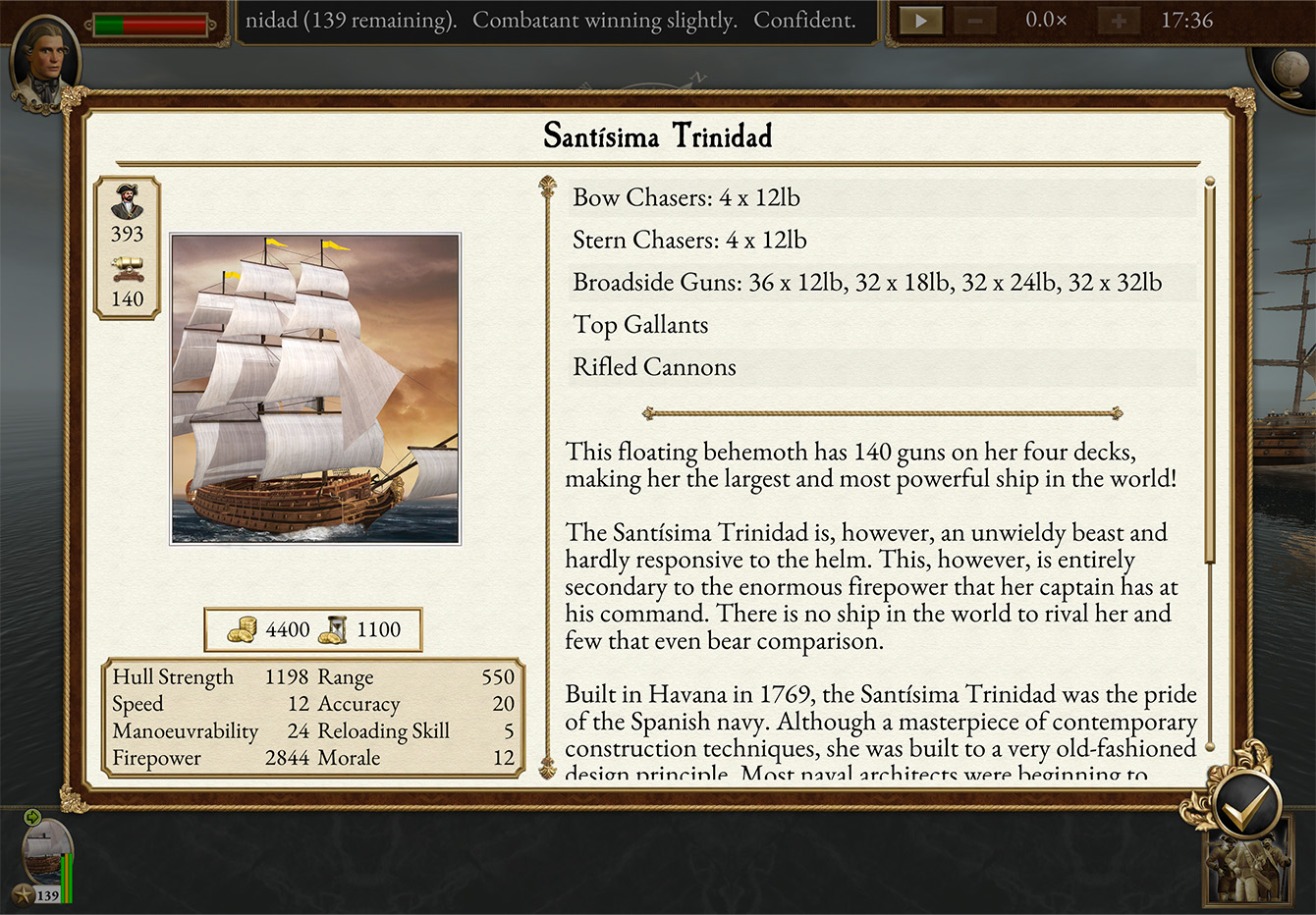 Heavy First Rate ship vs Santíssima Trinindad (TWE naval battle) - YouTube