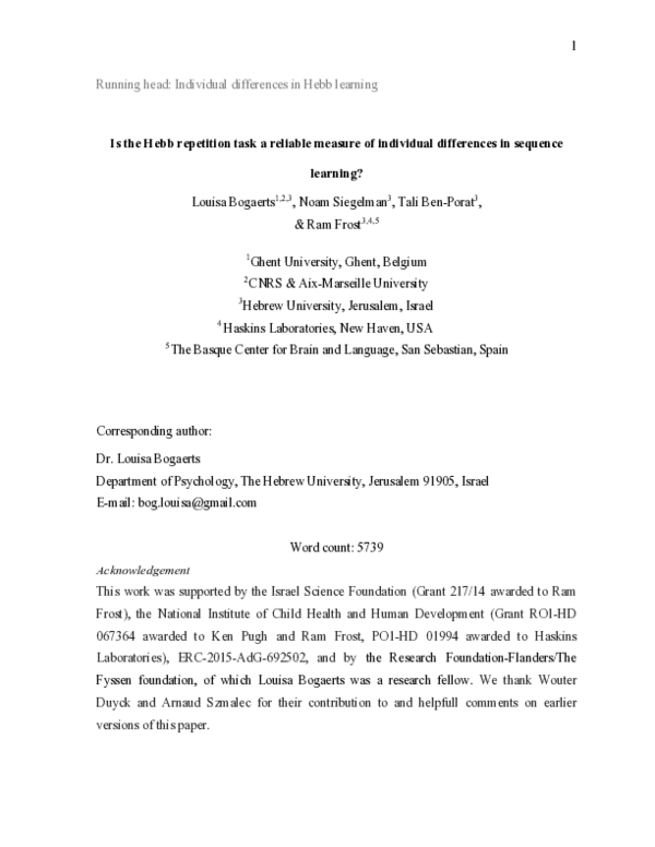 (PDF) Is the Hebb repetition task a reliable measure of individual ...