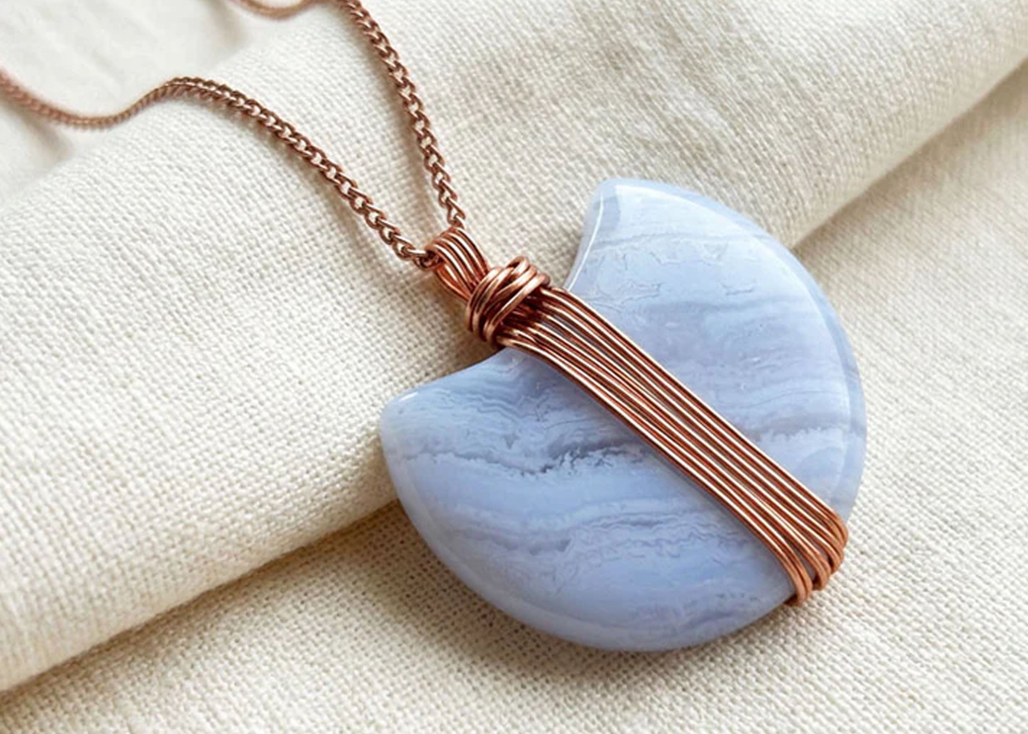 Handmade Blue Lace Agate Moon Necklace | Copper Wire Wrapped – Hart ...