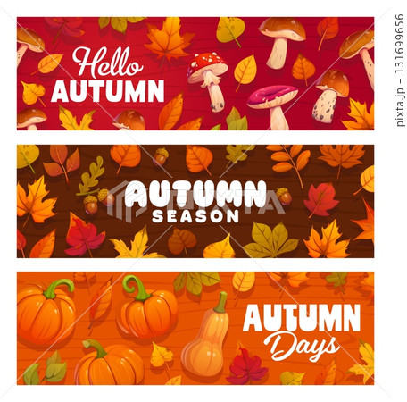 Hello autumn banners with falling leaves, berry...のイラスト素材 [131699656 ...
