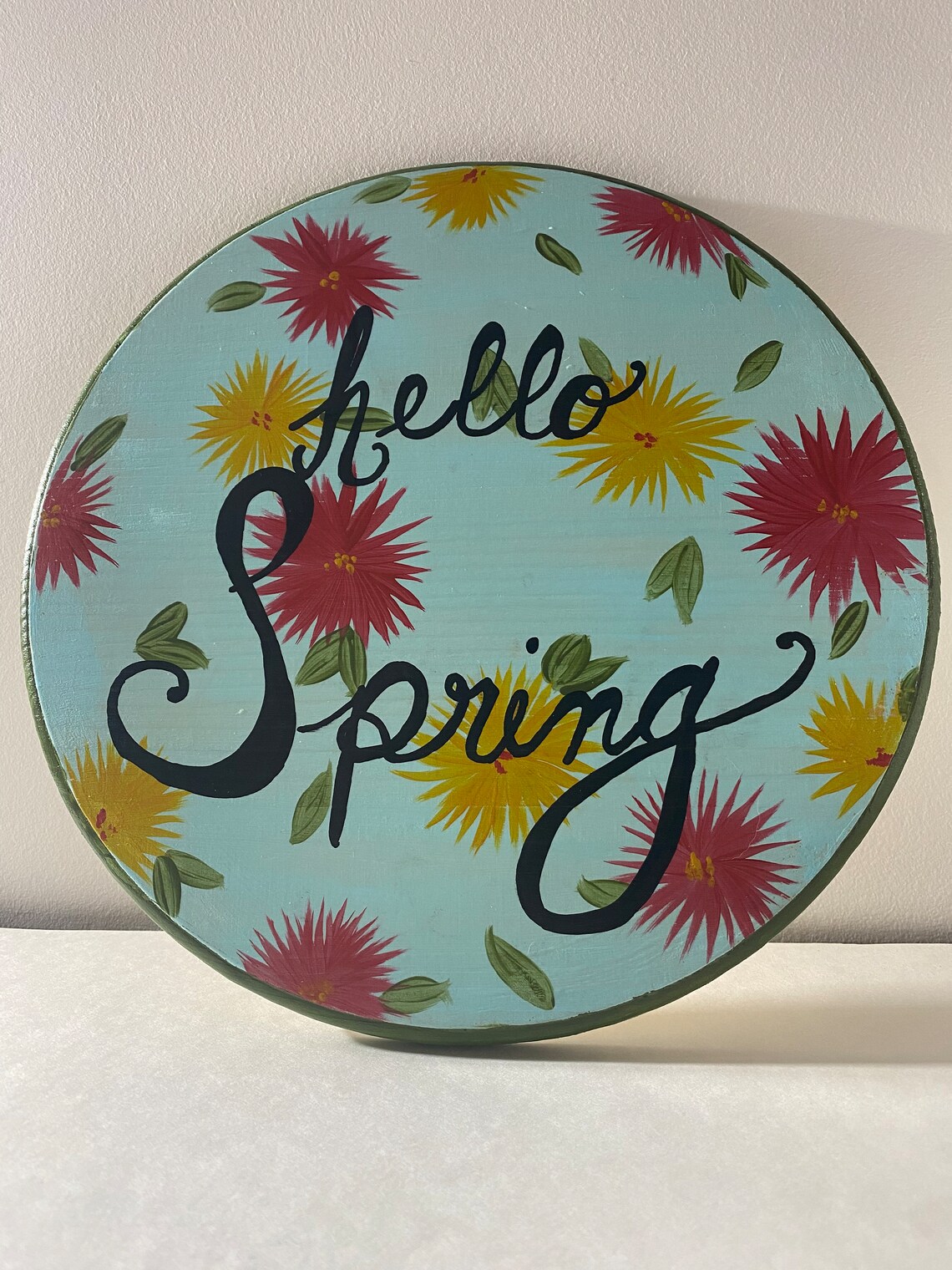 Hello Spring Sign, Round Wooden Sign, Home Decor Sign, Front Porch ...