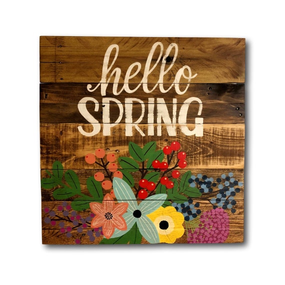 12in Wooden Sign: Hello Spring - Etsy | Hello spring sign, Spring sign ...