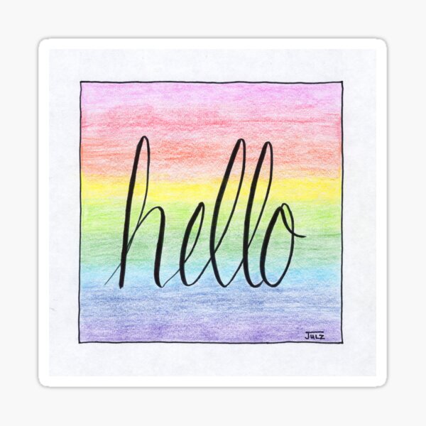 "Hello in Rainbow Colored Pencil" Sticker for Sale by JulzArts | Redbubble