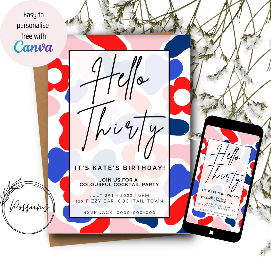 Editable Hello Thirty 30th Birthday Party Invitation - Etsy