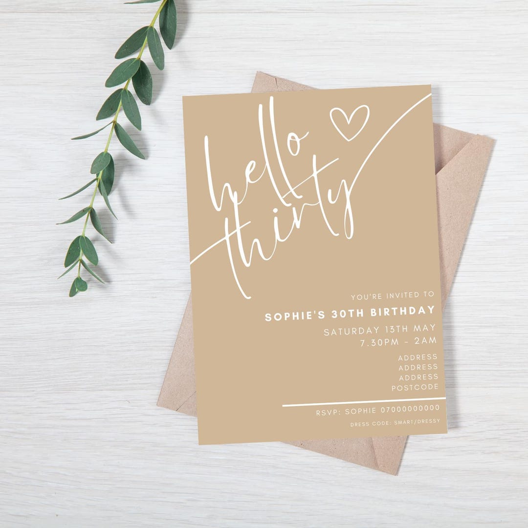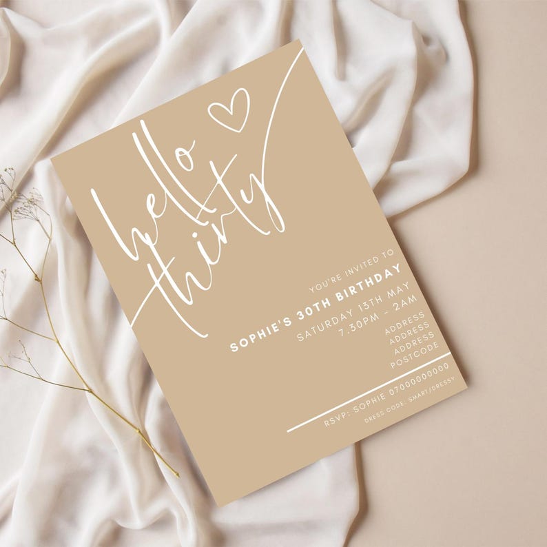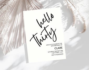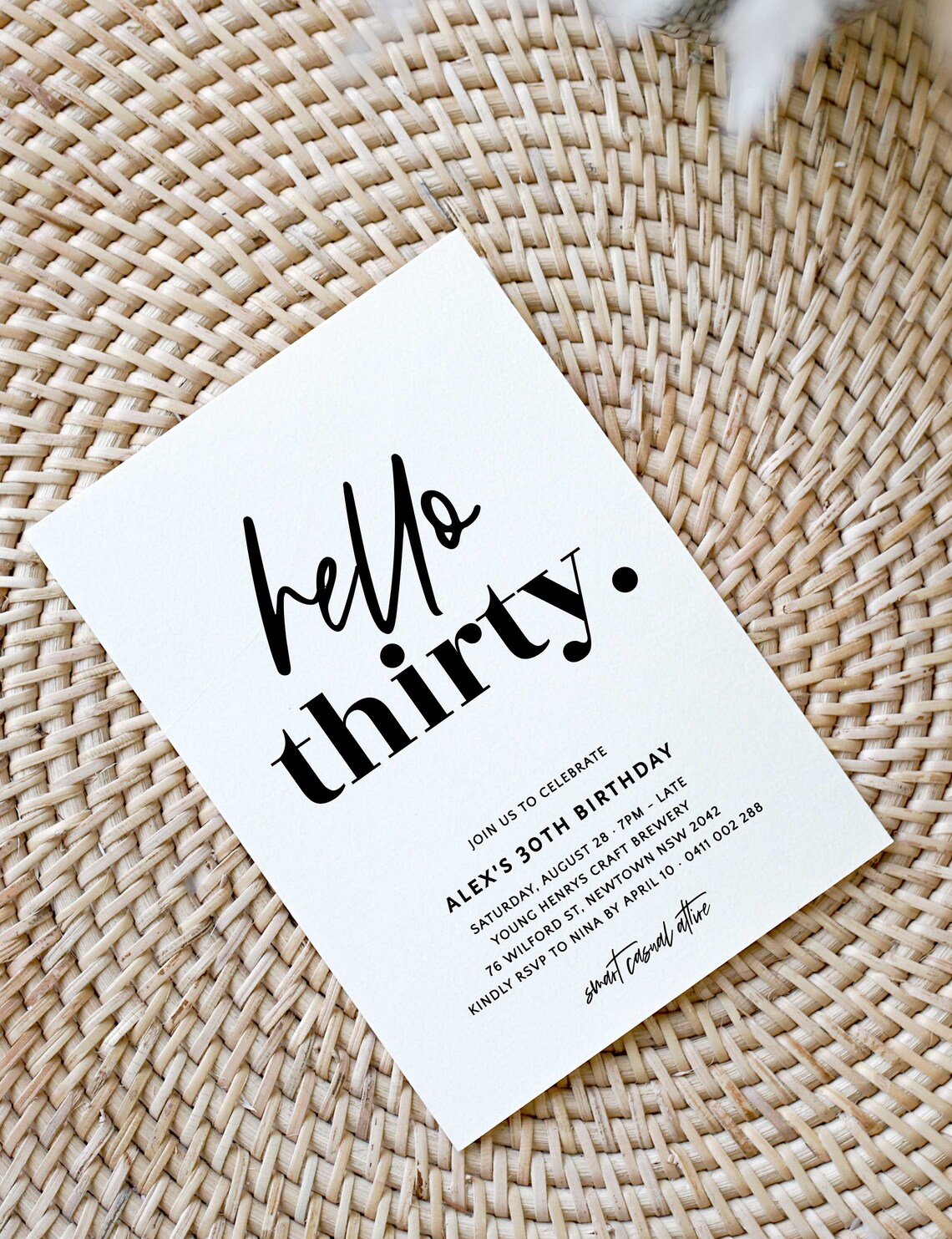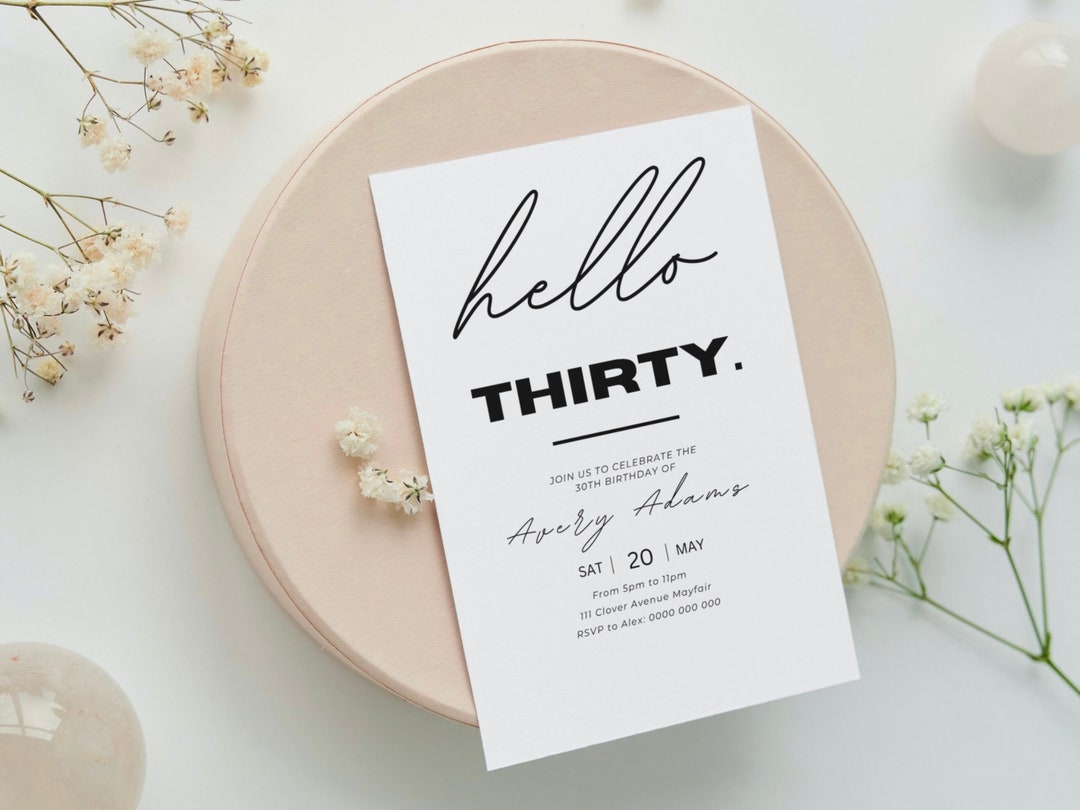 Editable Hello Thirty Birthday Invitation: Trendy Minimalist Design ...