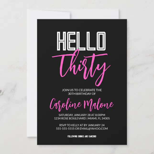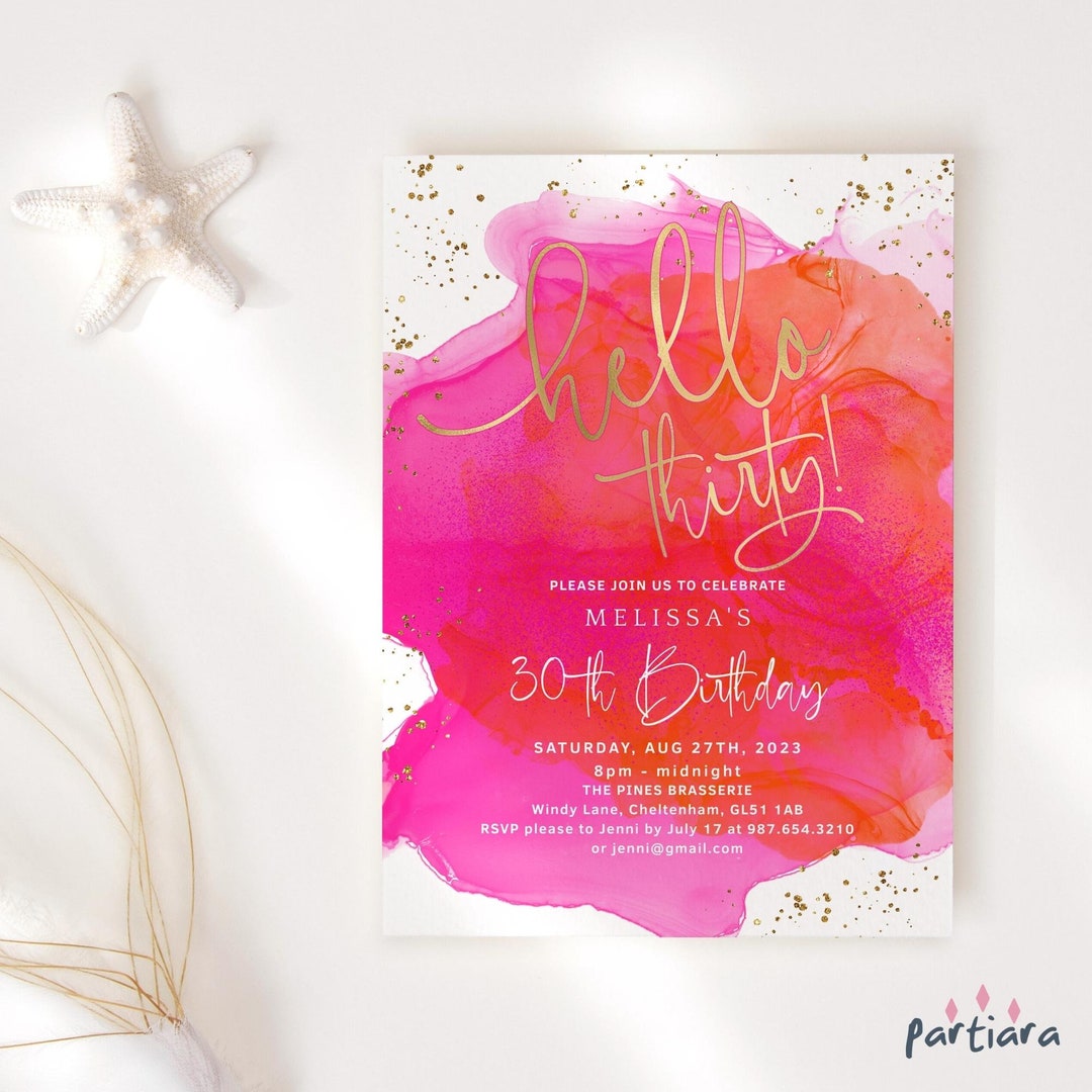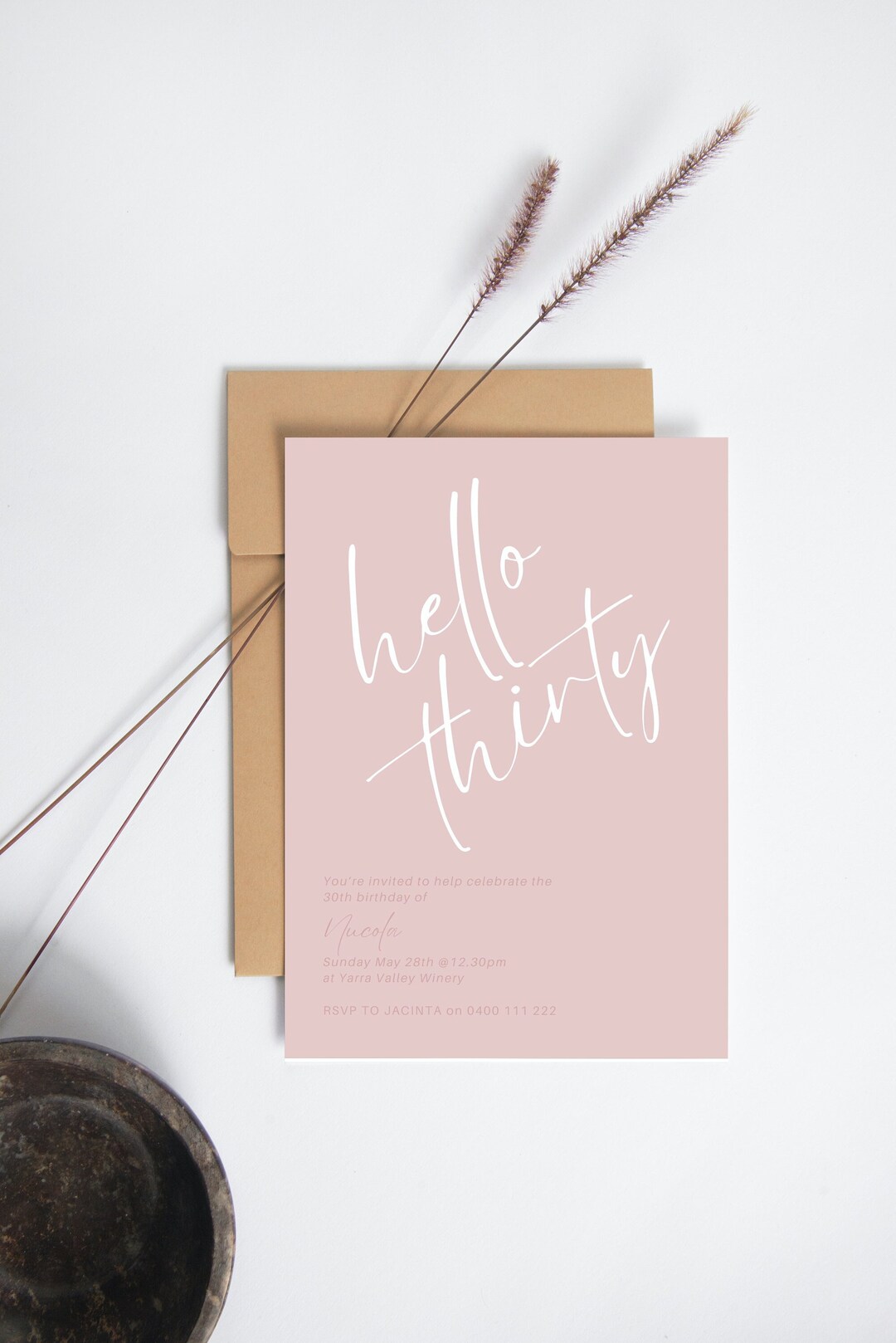 Hello Thirty Birthday Invitation, 30th Birthday Invite, Pink Birthday ...