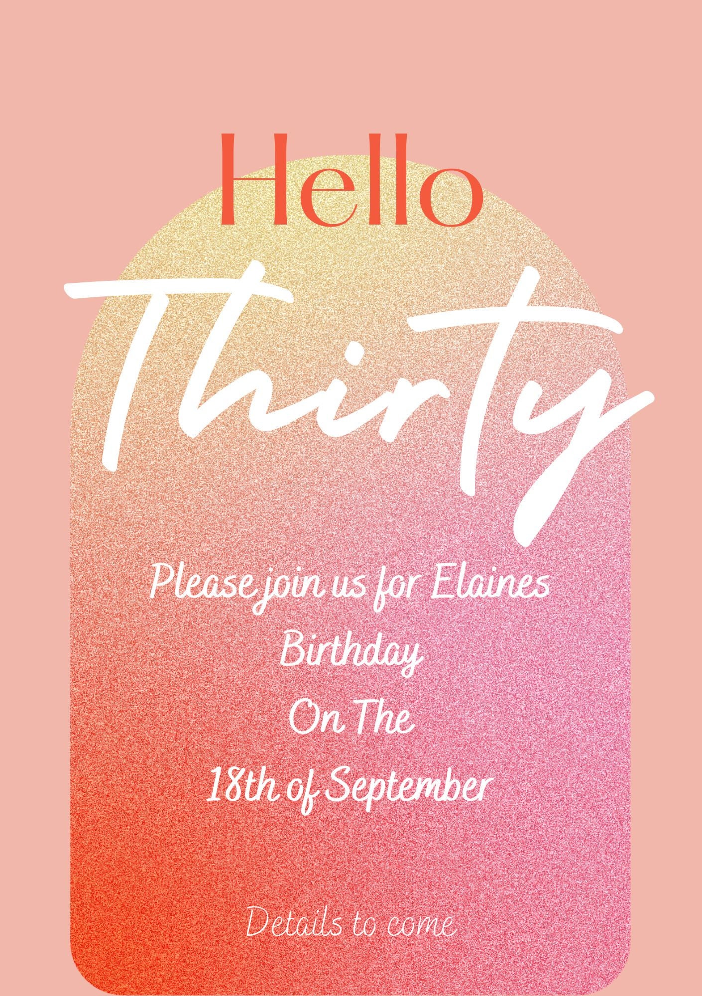 Digital Hello Thirty Birthday Invitation Peachy Thirtieth Birthday ...