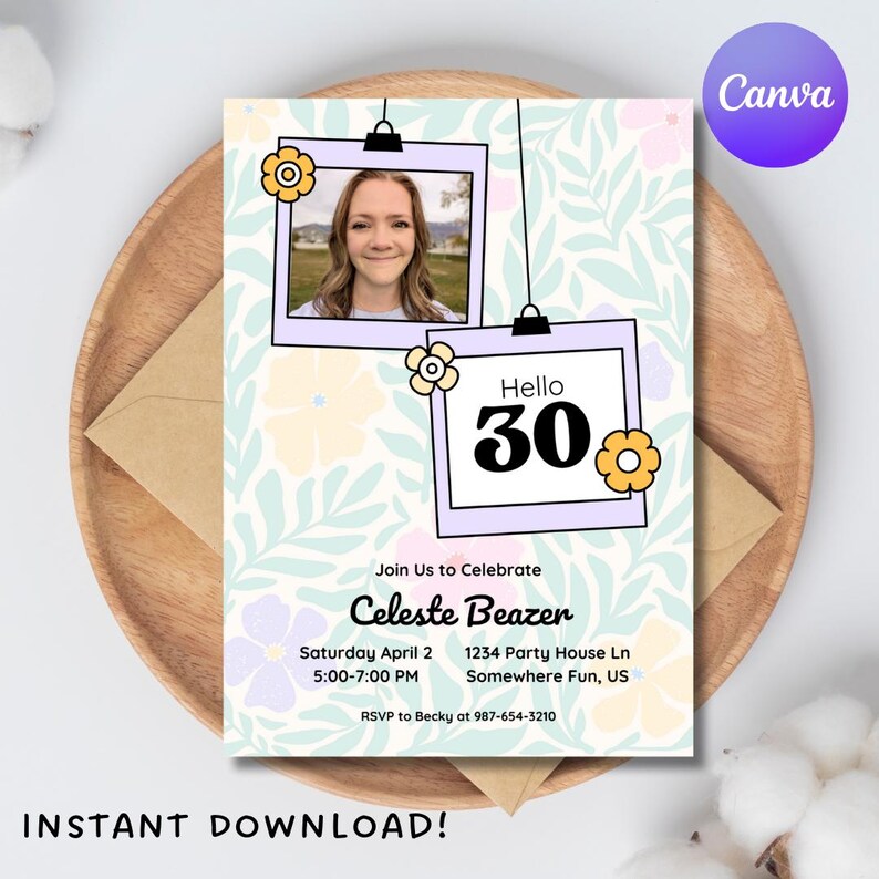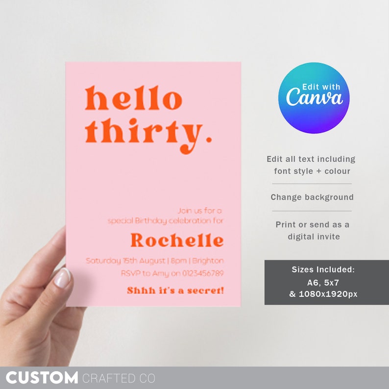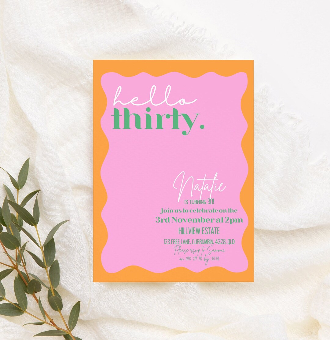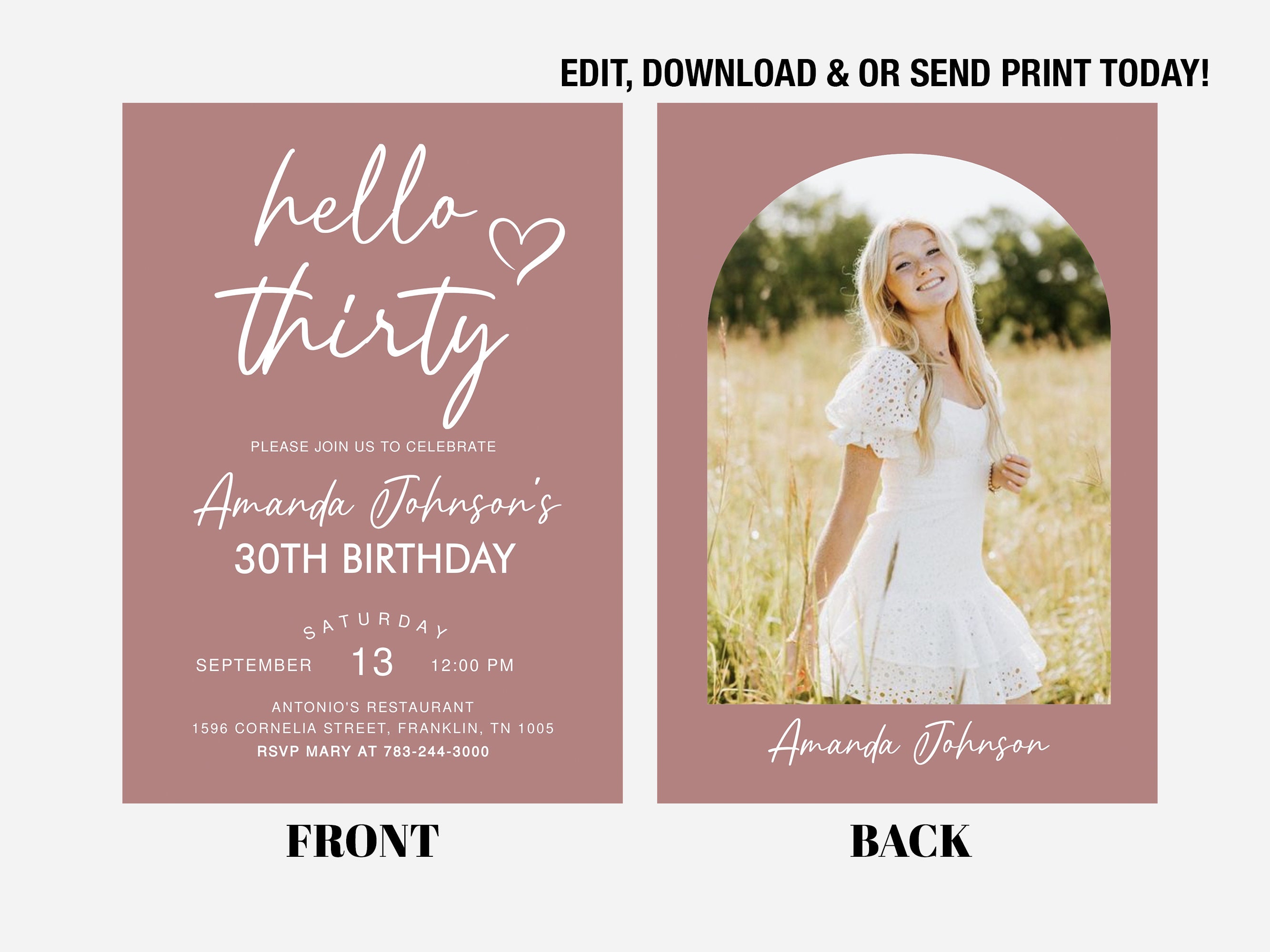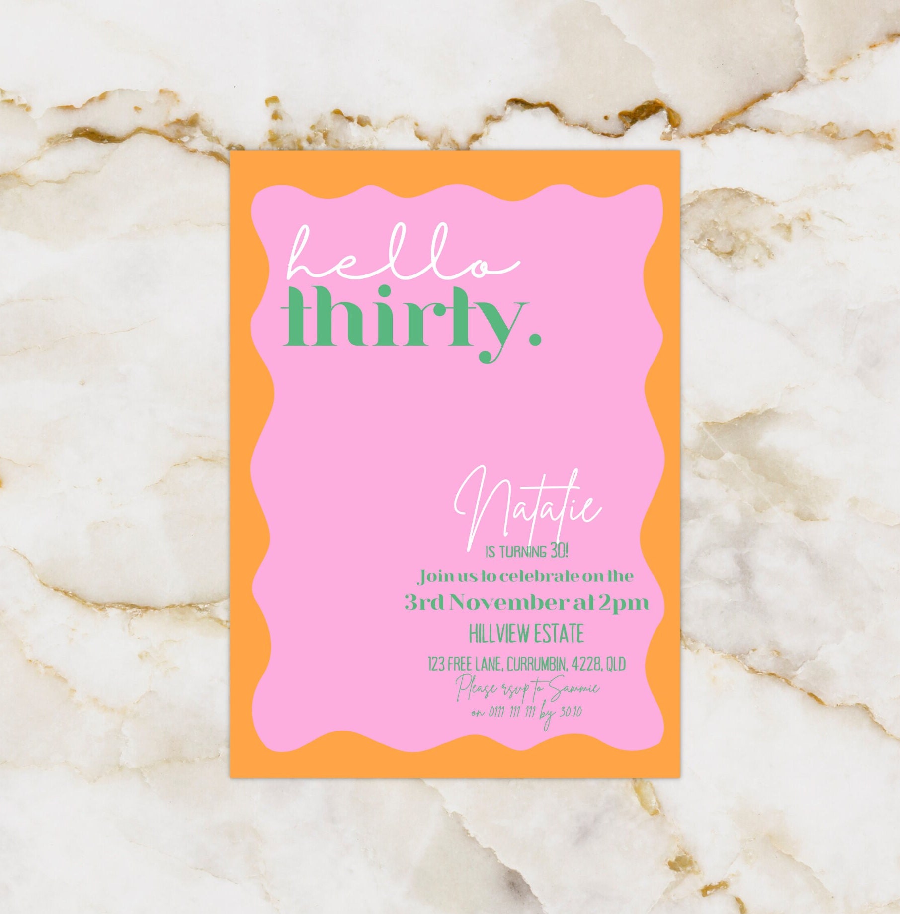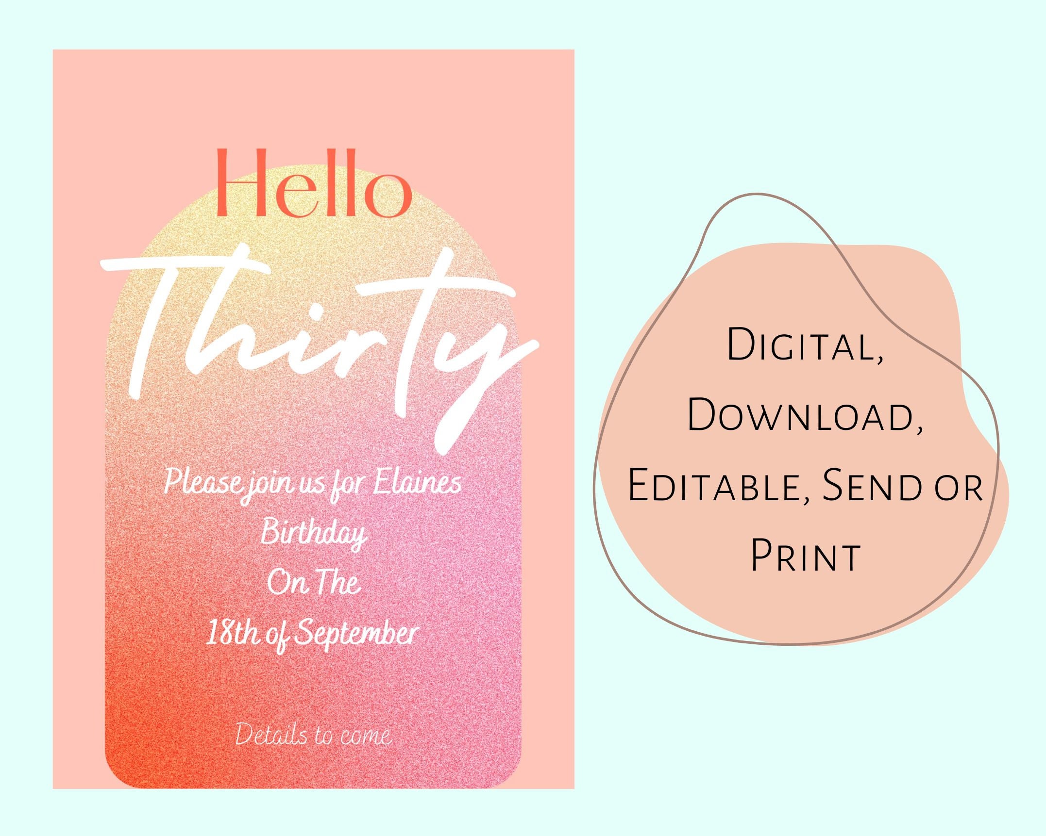 Hello Thirty | Birthday Invitation | Digital Download | 30th Birthday ...