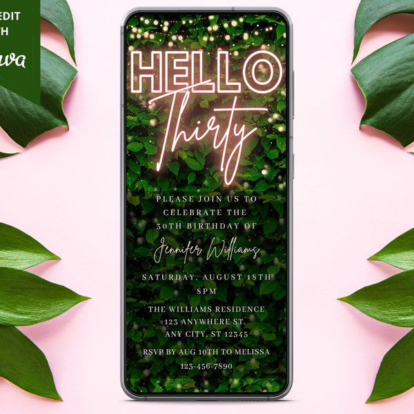 Hello 30 Birthday Invitation Template, 30th Birthday Digital Invitation ...