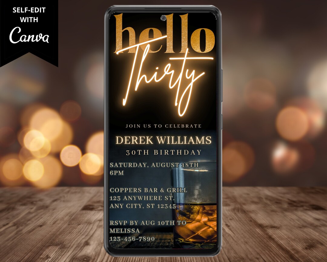 Digital Men's Hello Thirty 30th Birthday Party Whiskey Invitation ...