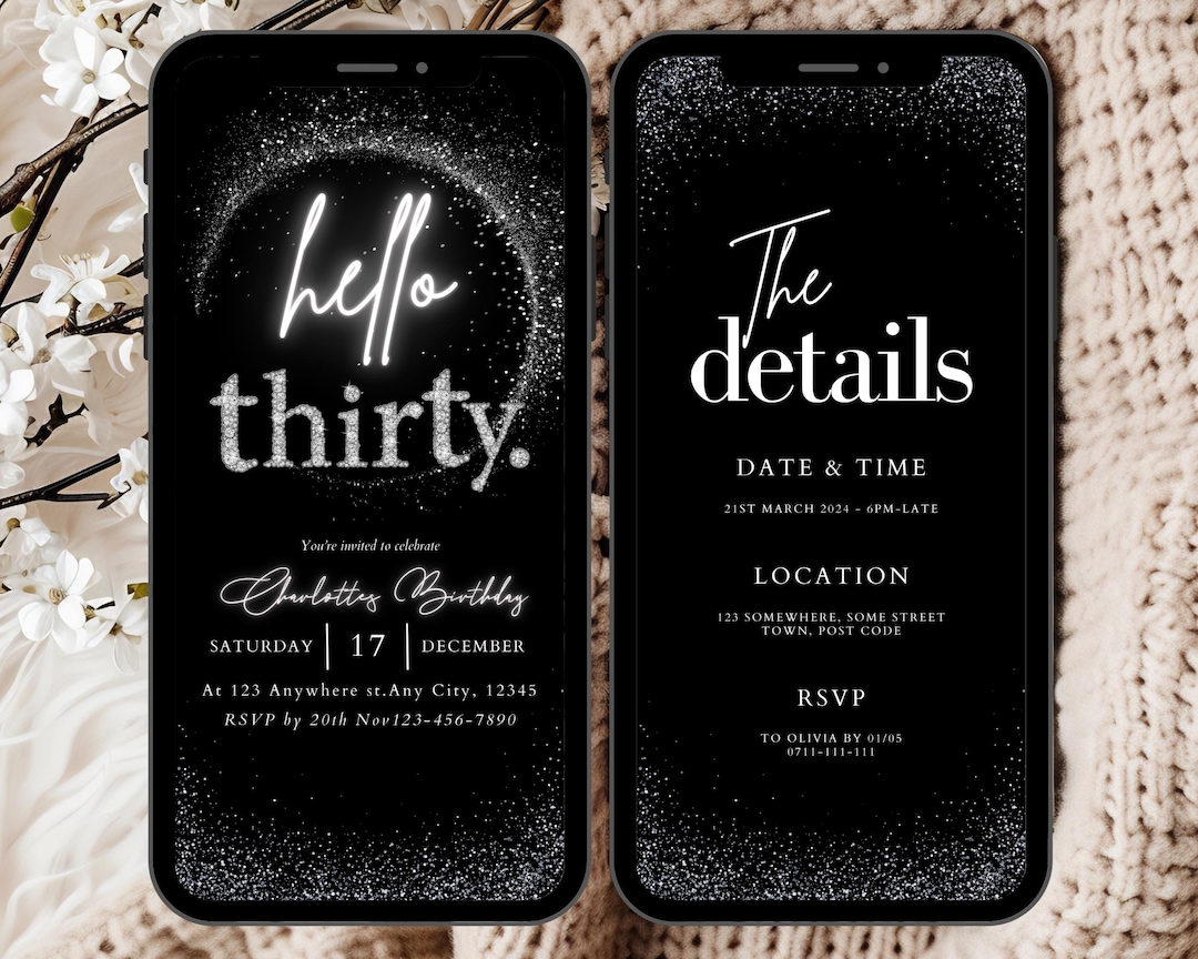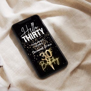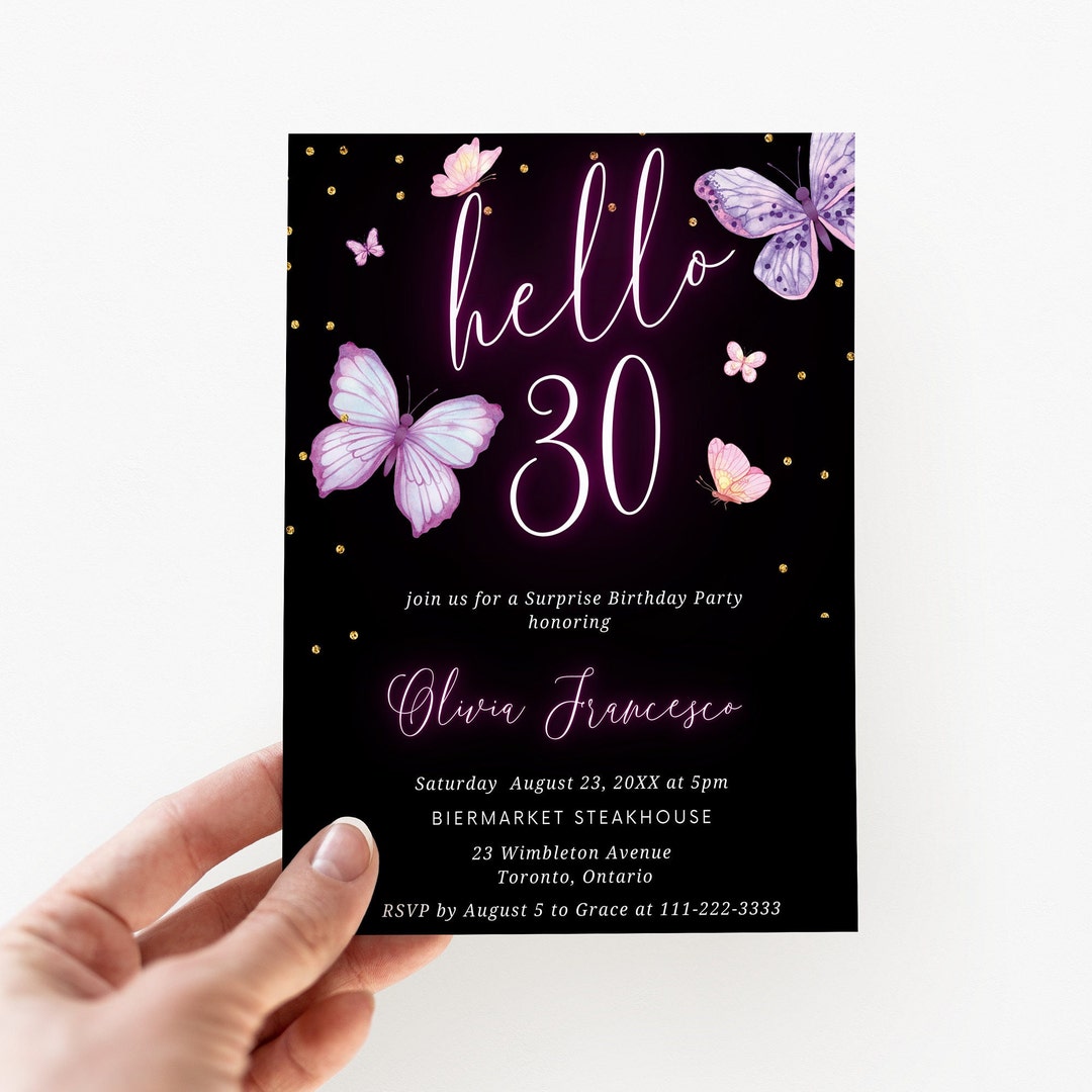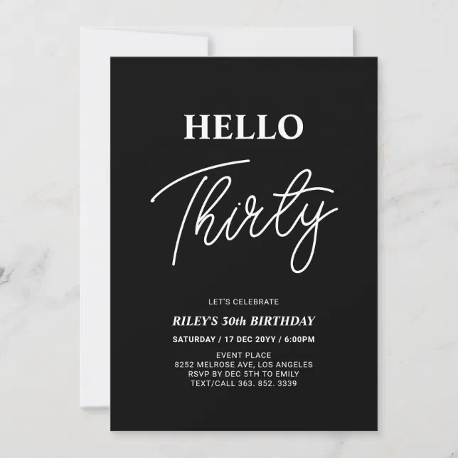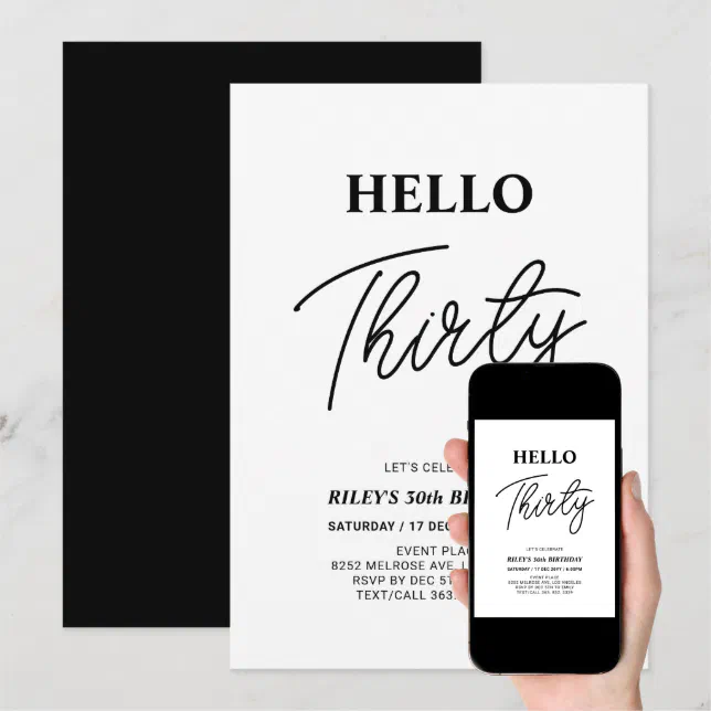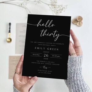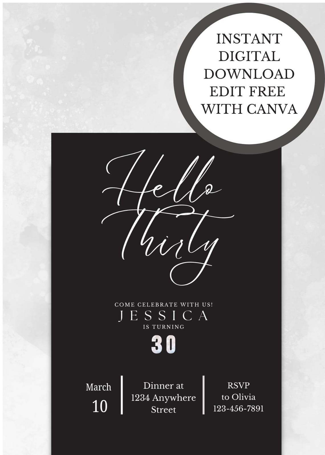 Hello 30 Invite, 30th Birthday Invitation, Black 30th Invite, Instant ...