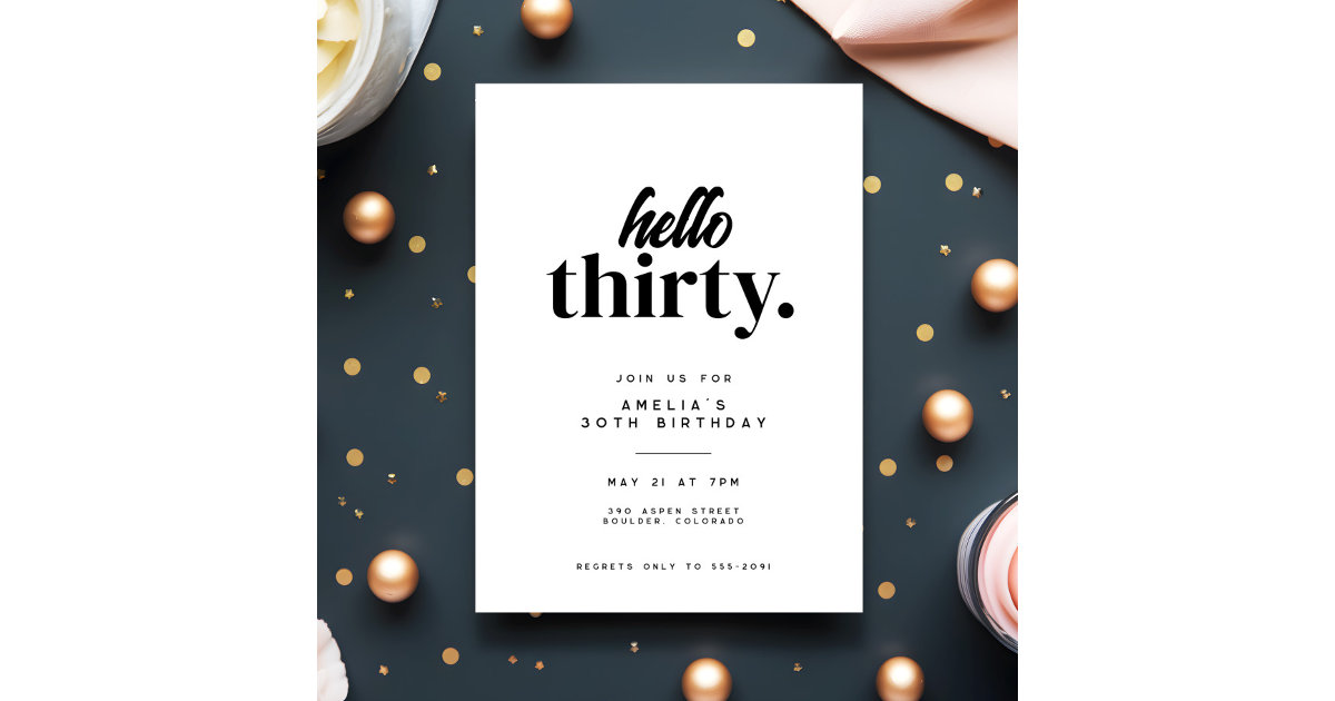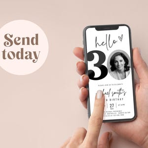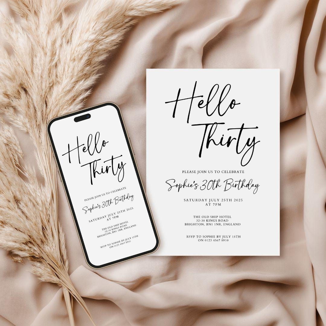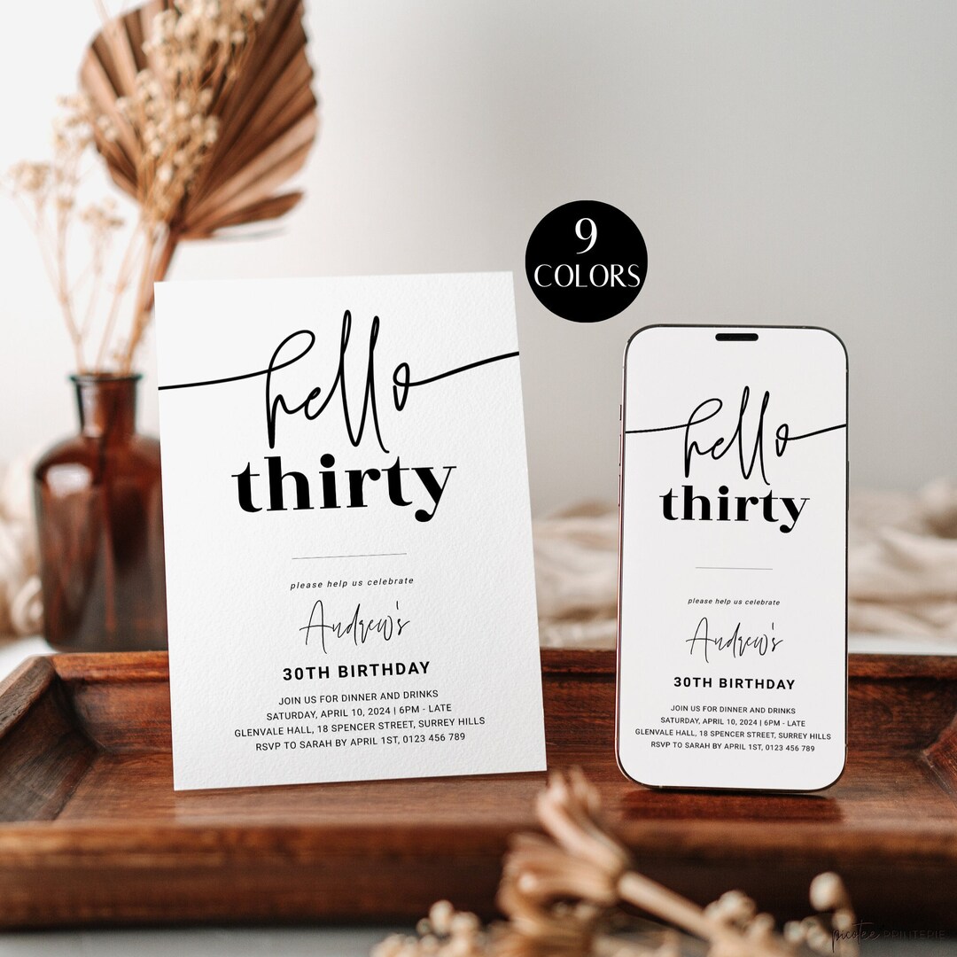 30th Birthday Electronic Invitation: Minimalist Evite, Editable Hello ...