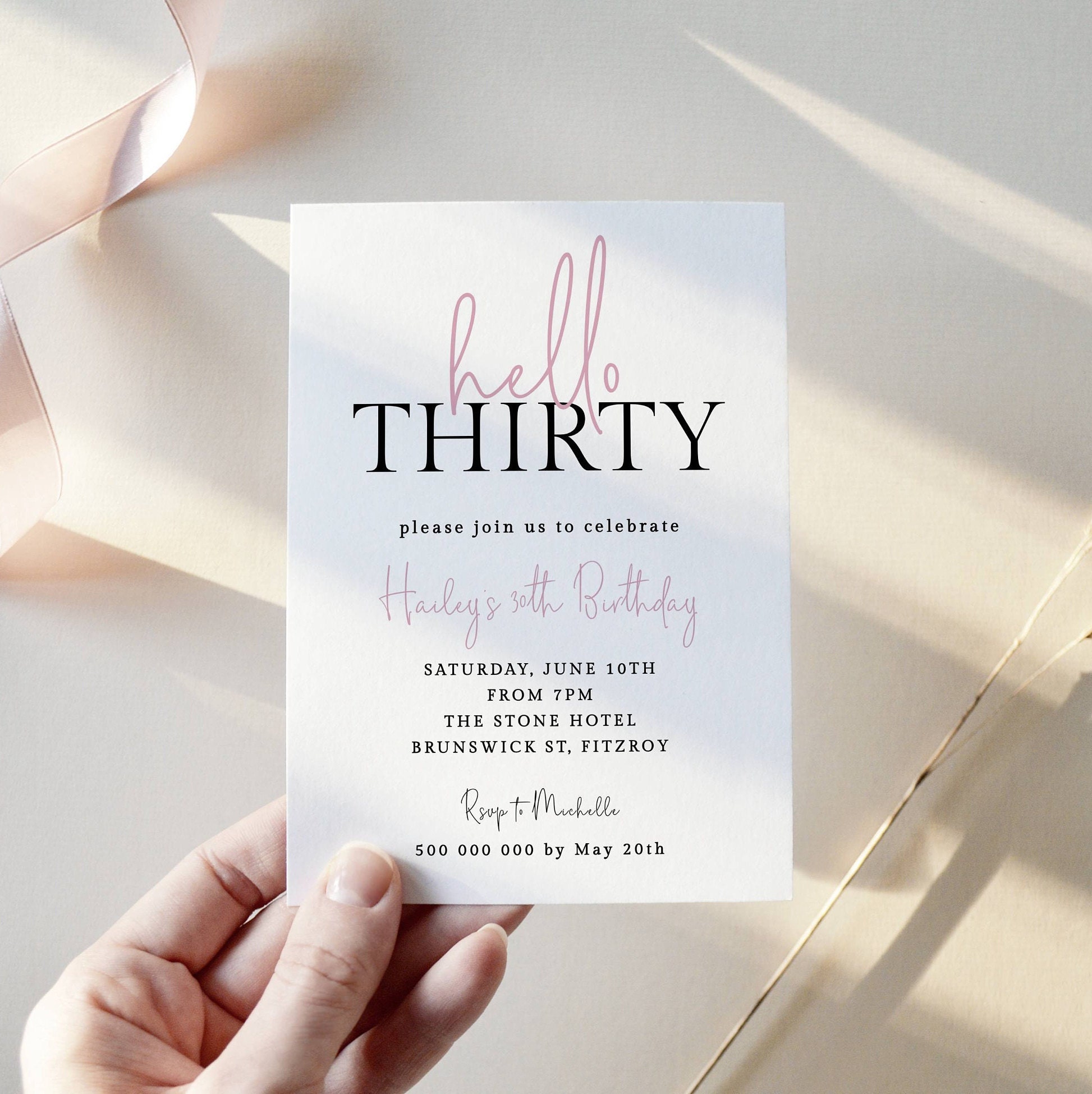 Hello Thirty 30th Birthday Invitation, Dirty Thirty Invitation, Minimal ...