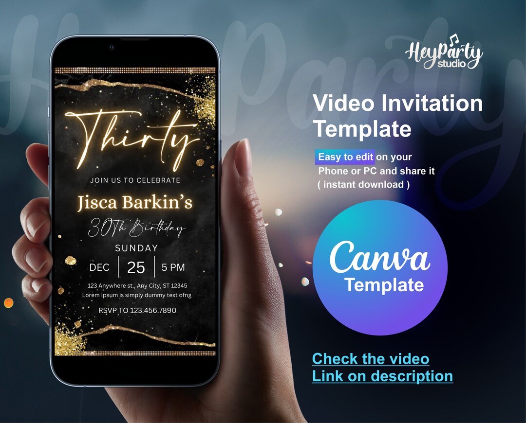 Hello 30th Birthday Invitation, 30th Video Invite, 30th Editable ...