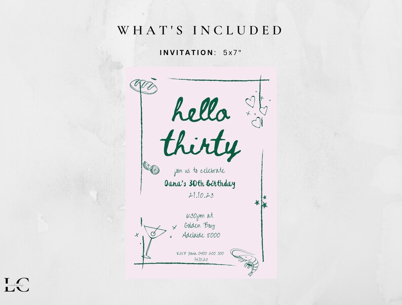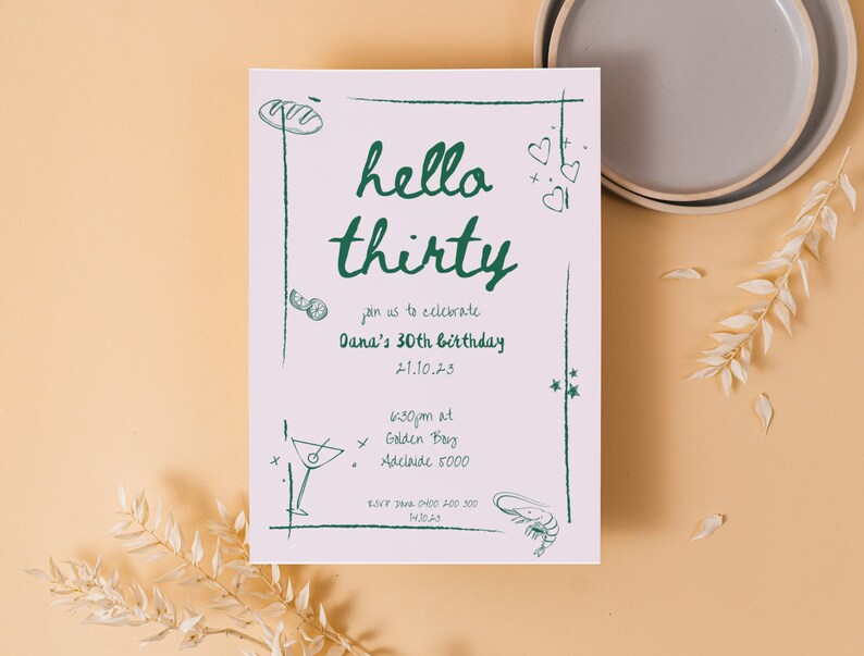 Thirty Birthday Invitation, Hello Thirty, Birthday Invite, Hand Drawn ...