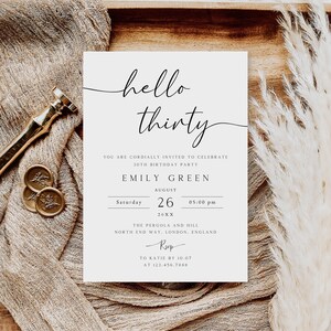 Editable 30th Birthday Invitation, Hello Thirty Invitation Template ...